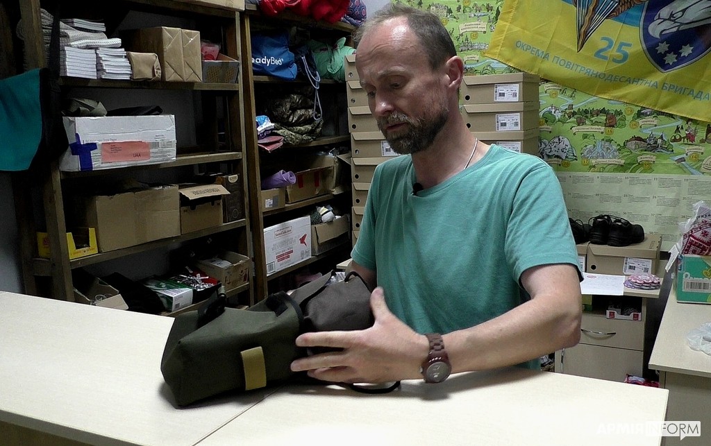− Ми маємо зв’язки із іншими волонтерськими групами та об’єднаннями. Нещодавно навели контакти з невеликим швацьким цехом у одній з територіальних громад у карпатському регіоні. Маємо можливість постачати невеликі партії добре відшитого спорядження. Як то ремінно-плечові системи, підсумки, комплектуємо індивідуальні аптечки. Є запити на безкаркасні ноші для медиків передової. Спочатку відшиваємо пробну партію. Даємо тестувати. Далі вносимо корективи за побажаннями вояків. От нині вже думаємо про осінь та зиму. Будемо виготовляти для наших солдатів захист від дощу. Тому вже консультуємось із знавцями та шукаємо відповідні лекала для пошиття дощовиків, — розповідає Василь Кметь. — Якусь частину спорядження закупляємо. Зокрема, і за кошти від наших закордонних донатерів. З їхньою допомогою купляємо в Європі автівки та тепловізори.