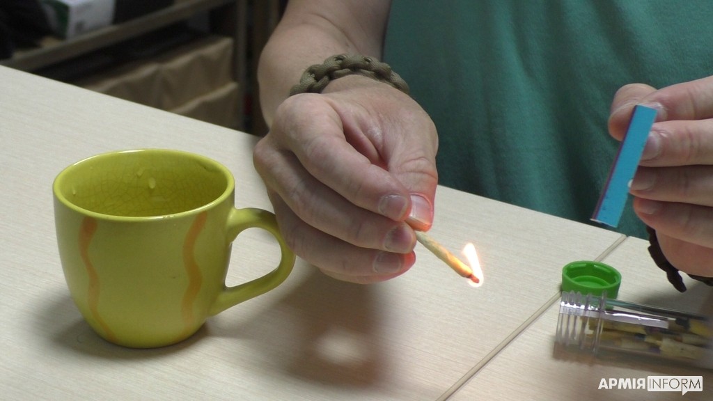 − Це компонування досвіду наших географів-мандрівників та потреб армійців. Ми розробили технологію виробництва, пакування сірників у герметичні капсули. І тепер передаємо їх нашим підопічним, — каже волонтер-науковець.
