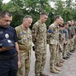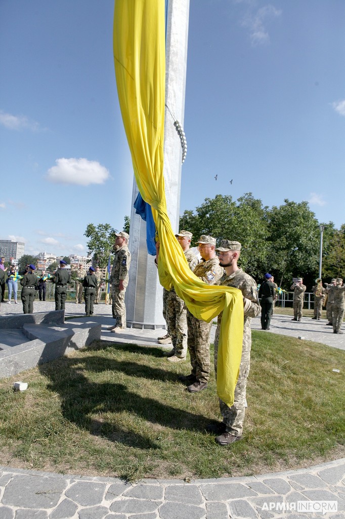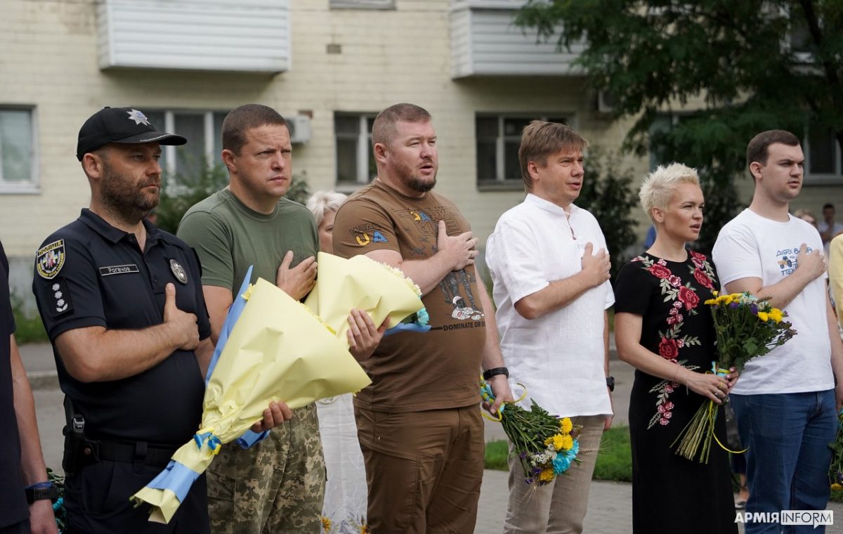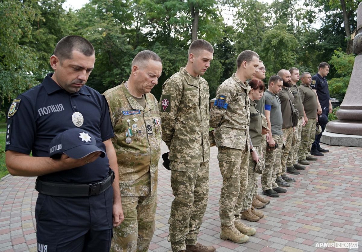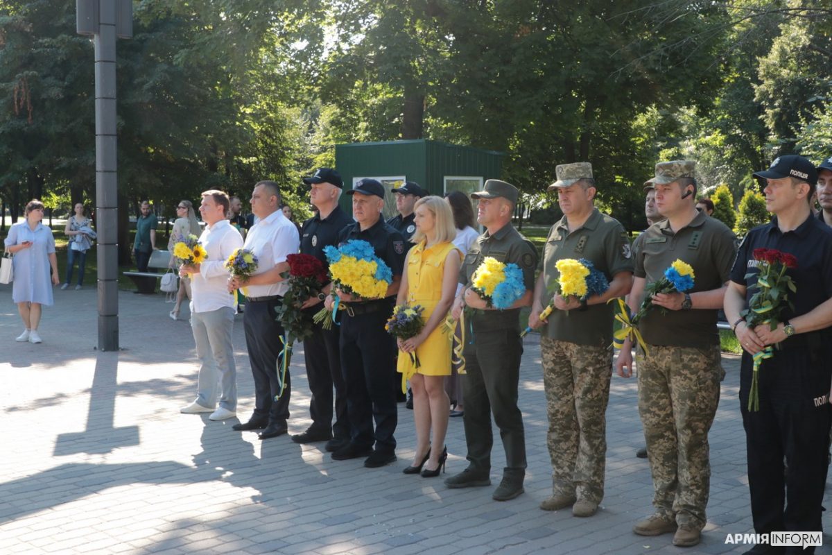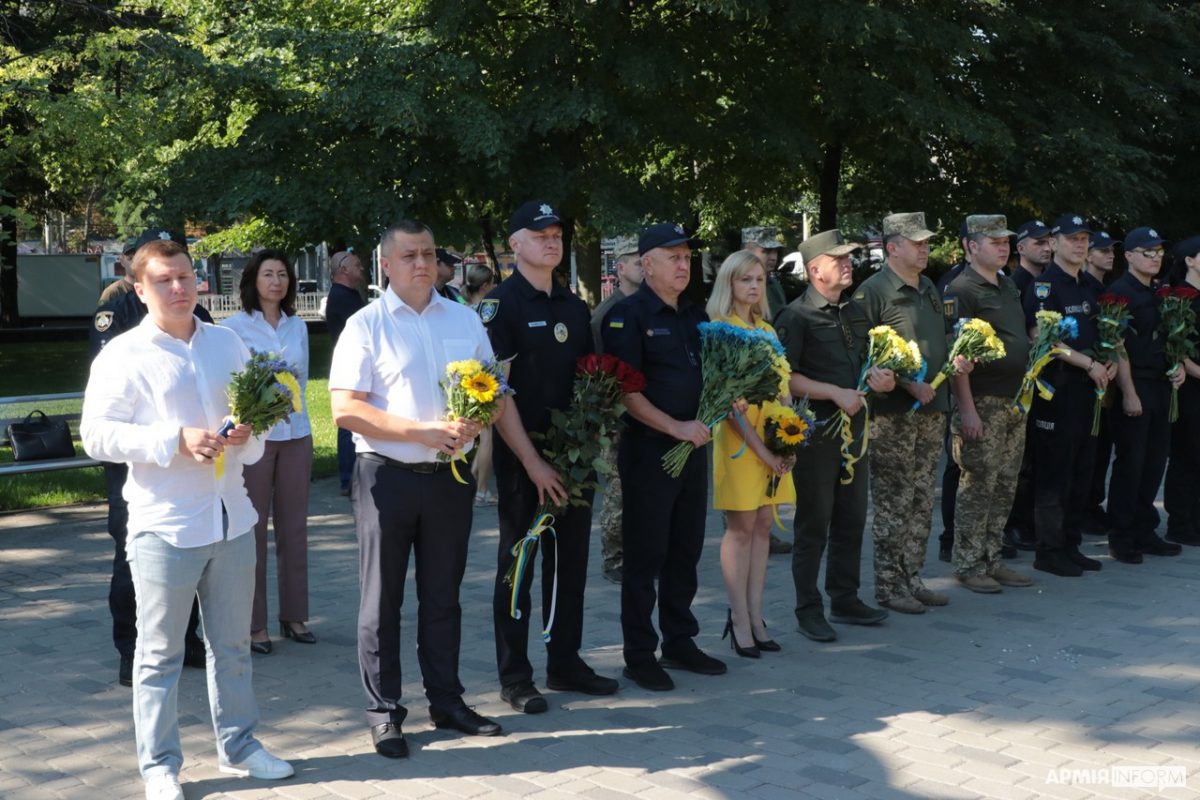 З глибокою скорботою присутні схилили голови перед усіма цивільними та військовими, хто віддав своє життя заради майбутнього нашої країни. Виконати ритуал підняття Державного Прапора України під час проведення заходу надали військовослужбовцям — капітану Олександру Ілляшенко та молодшому сержанту Тетяні Андрієнко.