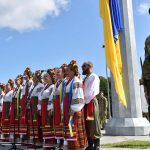 У Хмельницькому урочистості до Дня Української Державності відбулися біля найбільшого Державного Прапора області, що в дендропарку обласного центру.