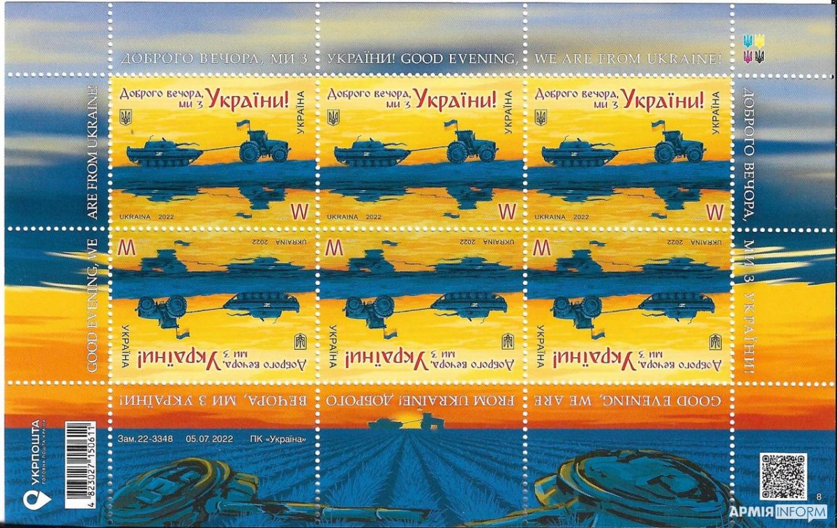 У рамках урочистостей також відбулося погашення поштової марки «Доброго вечора, ми з України», яка вийшла тиражем у 5 мільйонів штук. На ній зображено символ спротиву і єдності української нації у боротьбі з загарбником — трактор з українським прапором, який буксирує підбитий рашистський танк.