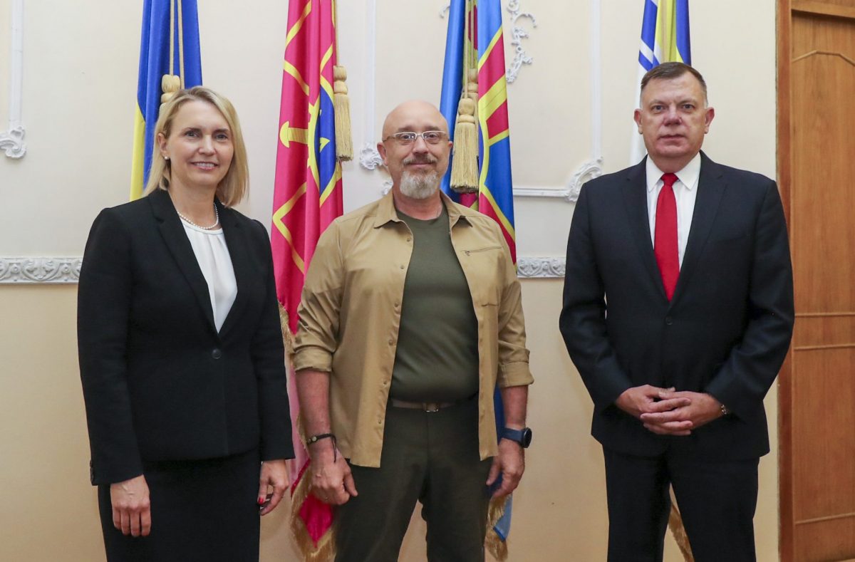 «Щойно прибулий аташе з питань армії та оборони бригадний генерал Гармон разом з послом Бріджит Брінк провів чергову розмову з Олексієм Резніковим щодо підтримки самооборони України з боку США, включаючи системи HIMARS», – зазначило посольство.