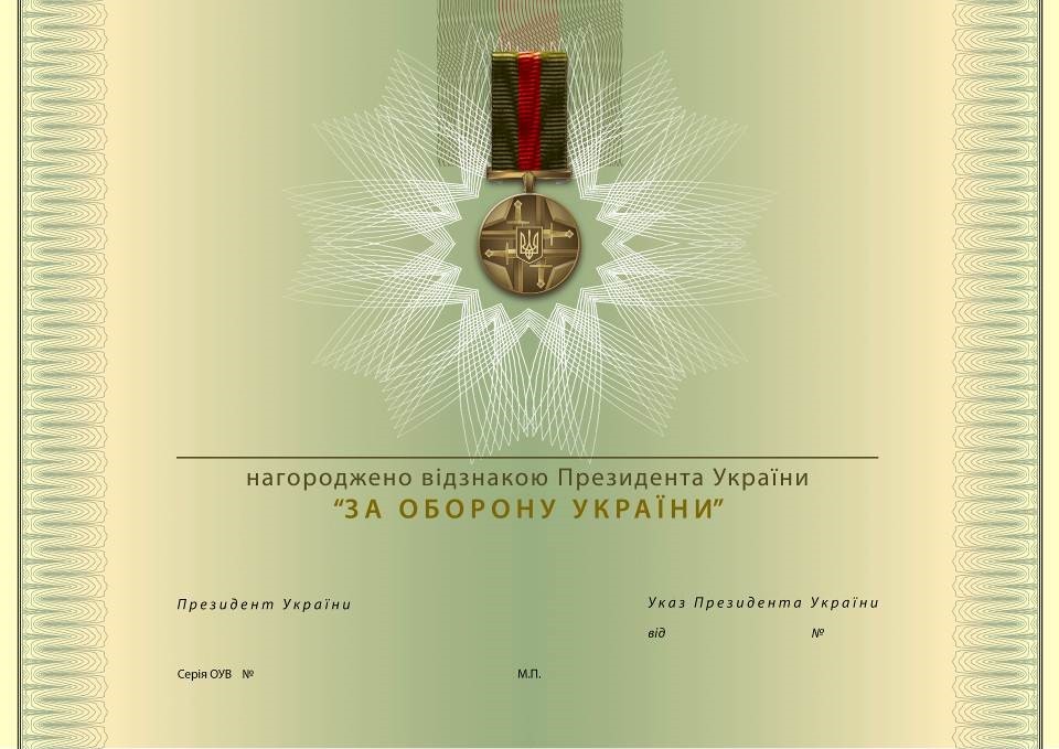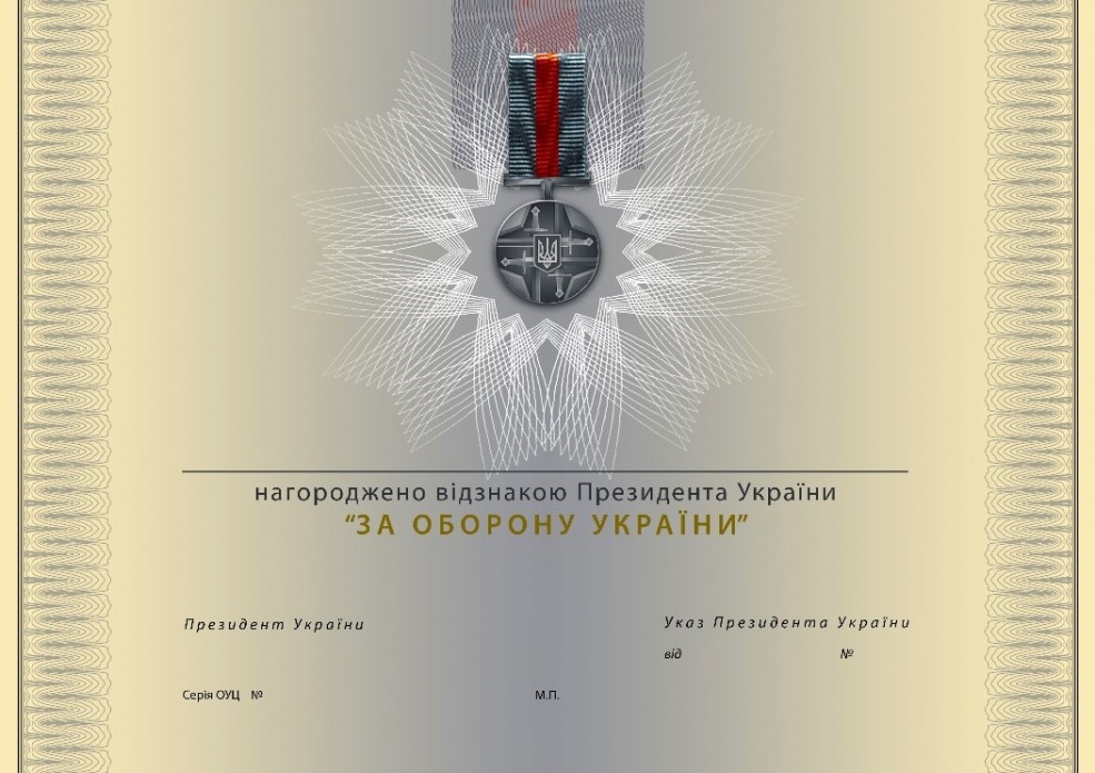 Зразки бланків Диплома до відзнаки Президента України «За оборону України».