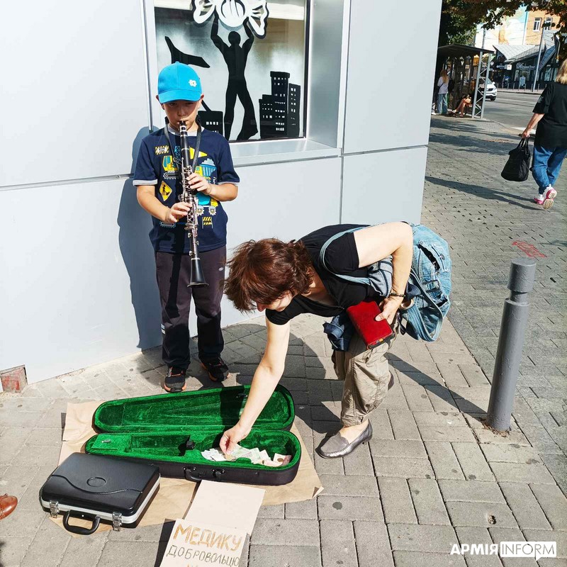 11-річна Соломія та 9-річний Остап Баланюки з Вінниці вирішили зібрати кошти, аби допомогти захиснику. Брат і сестра навчаються у музичній школі – Соломійка грає на скрипці, Остапчик – на кларнеті. І, щойно вони дізналися від мами про те, що потрібні кошти, відразу ж запропонували їй виступити десь у центрі міста та спробувати під час виступу зібрати кошти.