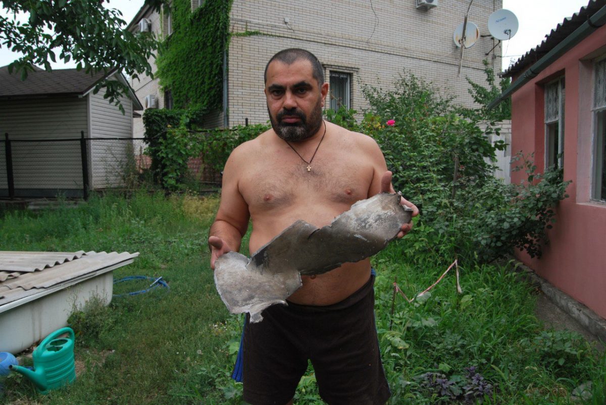 — Ну, як так думаю, що це уламок снаряда, — місцевий мешканець Ігор показує на метал. — Під час обстрілу прилетів цей шматок. Уночі все почалося десь о 2:15. Перший удар був дуже сильний, шибки повилітали. Потім ще 3–4 вибухи, але дещо тихіше. Усього було десь 7 вибухів. На жаль, підвалу в нас немає, а до церкви, де можна сховатися, дуже далеко.