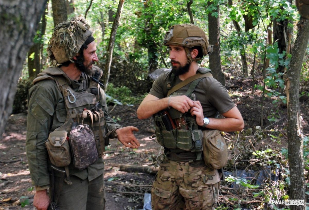 – Нещодавно довелось стикнутись із противником лоб у лоб. Вихід був спланований за декілька хвилин. Дістав усіх ворожий АГС, він засипав і засипав… Мій підлеглий запропонував сходити насипати йому у відповідь… Пішли в чотирьох. Ще не дійшли до потрібної точки, як наткнулись на ворога із Z-кою на патчі. А у мене червоно-чорний прапор з надписом «Батько наш Бандера, Україна – мати»… Нас почали обсідати по колу, контролювали, а ми двоє вийшли прямо в центр цього кола… Навіть поспілкувались трохи про хто, куди і звідки. Питаю: «Ви звідки?», а він: «Та ми мєсниє»… за мить почалась стрільба… Поки почали відходити, я випустив по них один магазин. Товариш, який стояв біля мене з ручним гранатометом, добряче їм насипав… Відходили з боєм… Після цього перелякані росіяни вивозили своїх поранених та загиблих, але ми не перешкоджали, хоч і була така можливість…