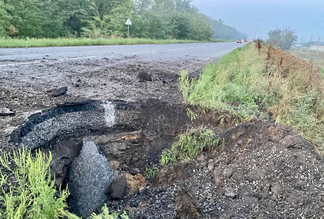 Валентин Резніченко повідомляє, що російські снаряди поцілили й у недавно відремонтовану Нікопольську трасу – там утворилися вирви. Минулося без загиблих та поранених.