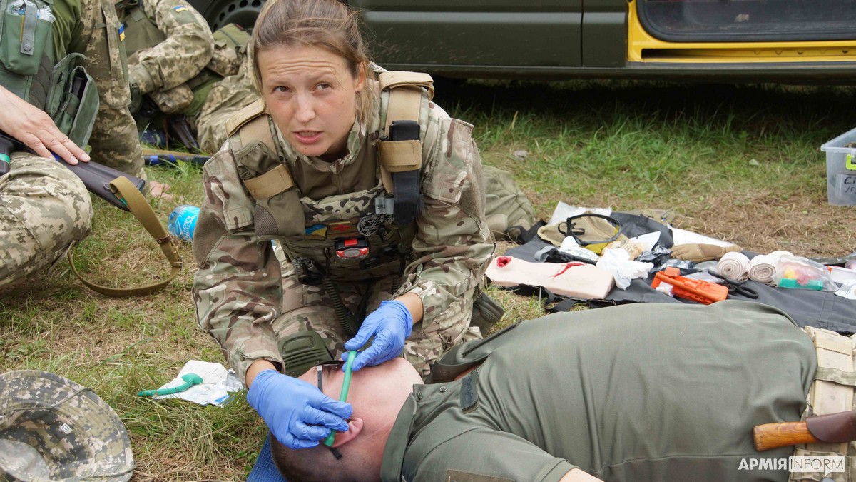 Окрім цього, чоловіків та жінок навчали, як надавати домедичну допомогу на полі бою, а саме в «червоній» та «жовтій» зонах. Зокрема, розповіли про необхідний вміст тактичної аптечки, методику накладання джгута, тампонування ран тощо. Практично відпрацювали послідовність роботи з армійським джгутом.