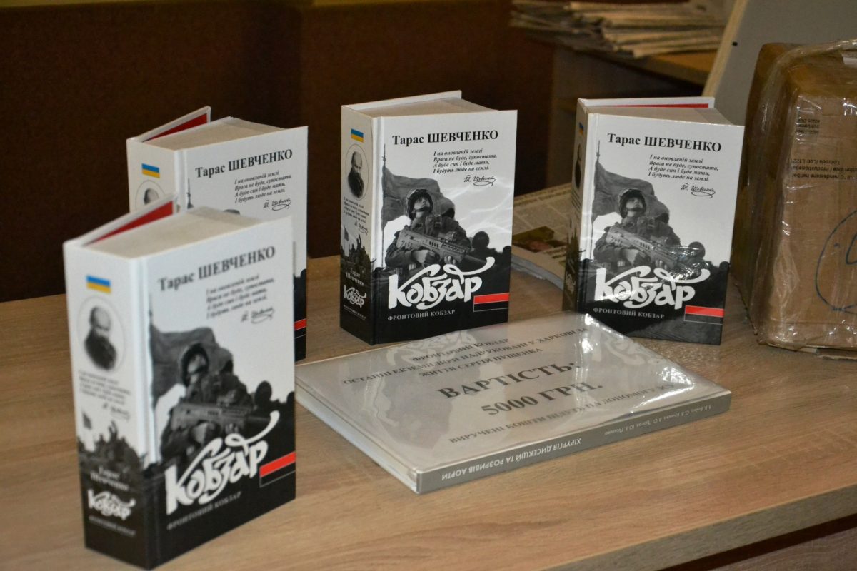 Під час відкриття виставки представники громадської організації «Об’єднання добровольців» виставили на аукціон книгу Сергія Пущенка «Фронтовий Кобзар». Кошти, вторговані від продажу книг, добровольці планують передати на потреби 80-ї окремої десантно-штурмової бригади.