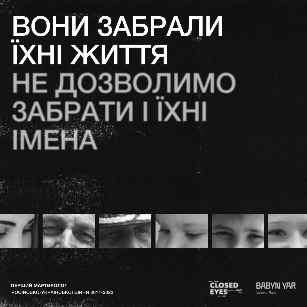 Голокосту «Бабин Яр». Нещодавно ця організація запустила Мартиролог жертв російсько-української війни серед цивільного населення за 2014−2022 роки «Закриті очі».
