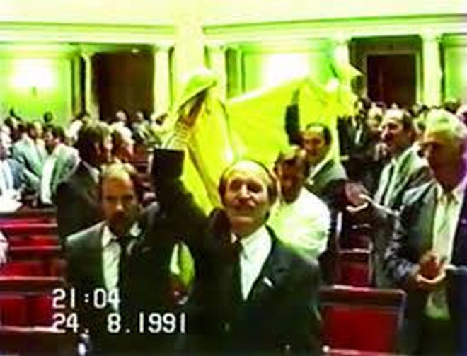 24 серпня після проголошення Акта незалежності України група народних депутатів внесла синьо-жовтий український прапор до сесійної зали Верховної Ради.
