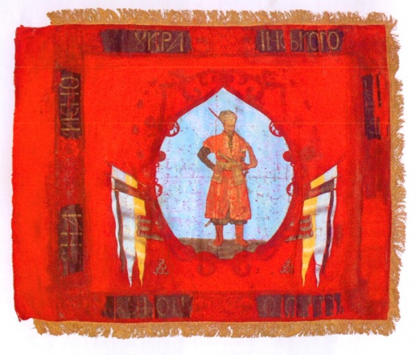Запорожці добре знали і розуміли символіку прапора. Адже одразу взялись за пошиття власного полкового знамена, де, до речі, зображено український національний стяг (синьою барвою вгорі). Посвята цього прапора відбулась 6 серпня 1917 року. Цього дня, відповідно до розпорядження командувача московським військовим округом полковника Верховського, «всі українці-солдати будуть увільнені від заняття, щоб взяти участь у святі». Це знамено пошив Український військовий клуб Москви. Коштувало воно 600 рублів — колосальні гроші на ті часи. «З одного боку була ікона Матері Божої — Покровительки всього війська Запорізького, з другого — звичайний стародавній малюнок козака із самопалом і шаблюкою».