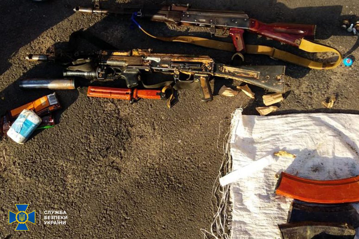 Серед вилученого у затриманих – арсенал бойових гранат з підривниками і автомати Калашникова з ящиками набоїв.
