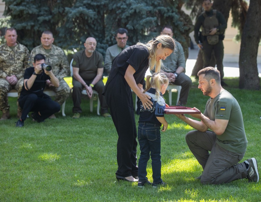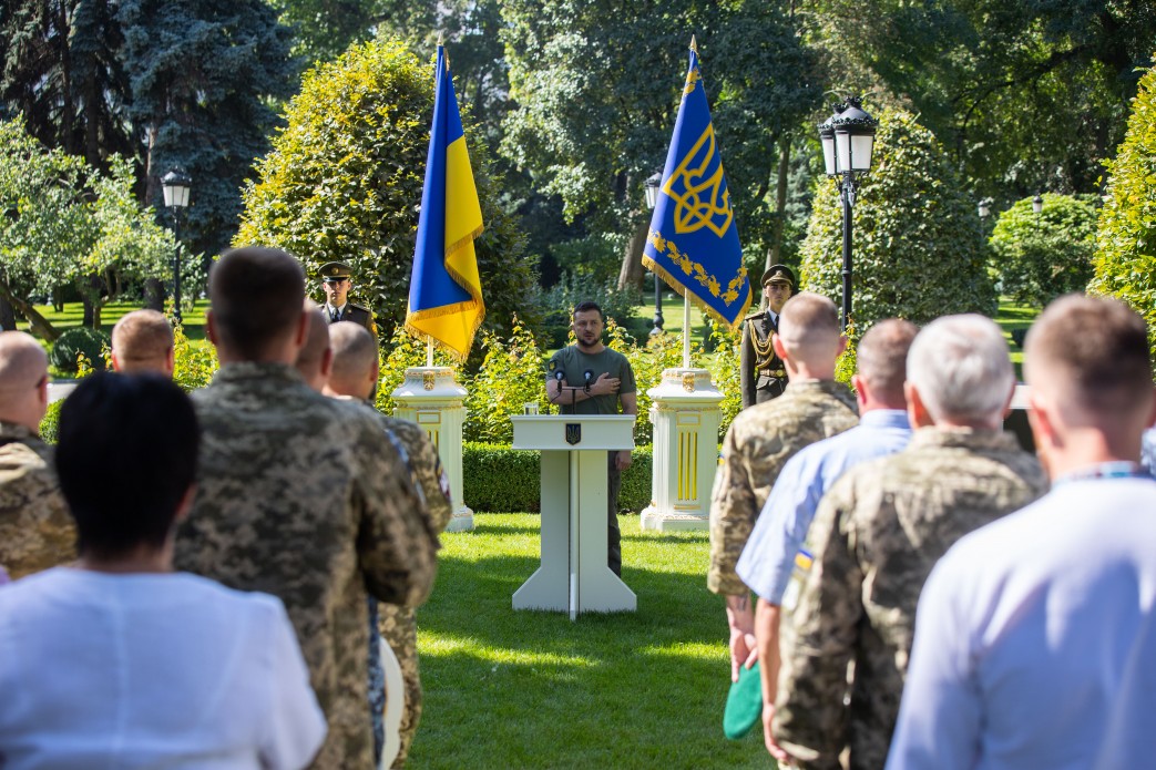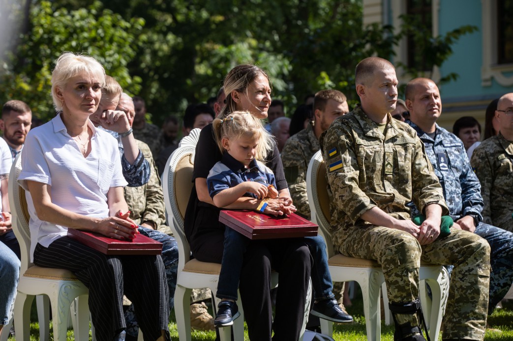 З нагоди Дня Незалежності України Президент Володимир Зеленський вручив ордени «Золота Зірка» військовослужбовцям, яким присвоєно звання Героя України, і членам родин загиблих Героїв, а також інші державні нагороди.