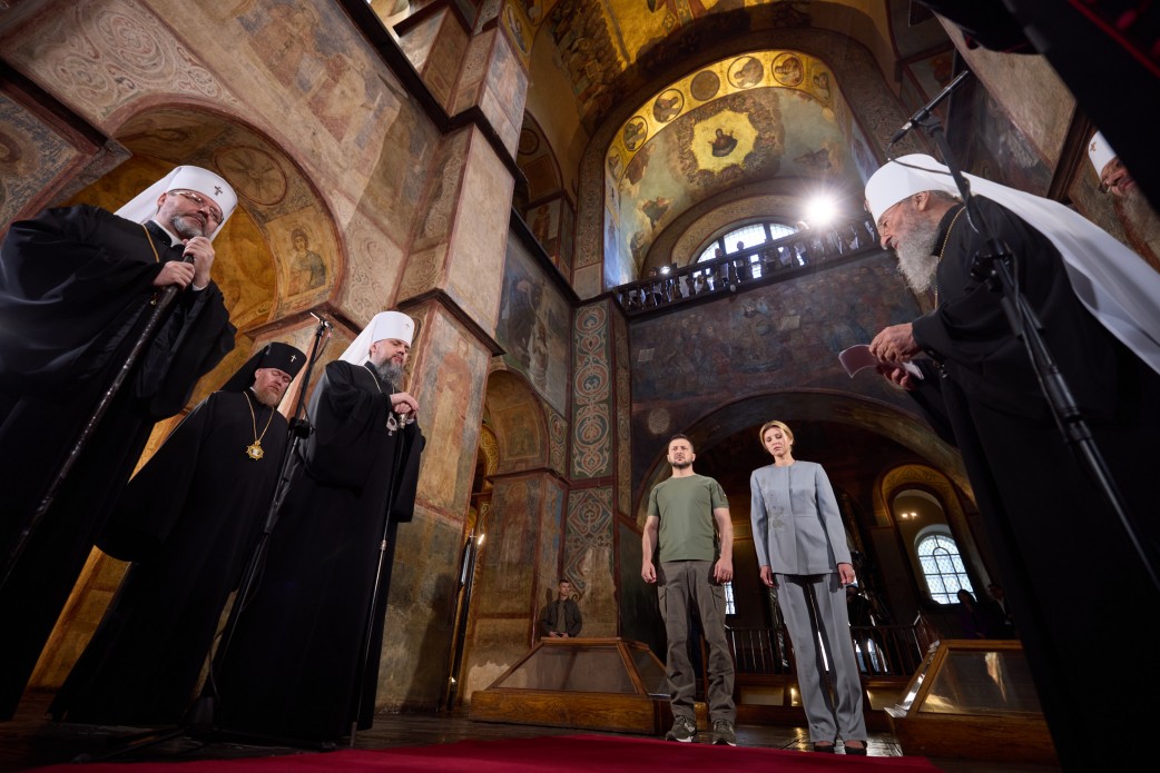 У соборі Святої Софії у Києві відбулася молитва за Україну з нагоди Дня Незалежності, участь у якій узяли Президент України Володимир Зеленський з дружиною і представники різних конфесій та церков.