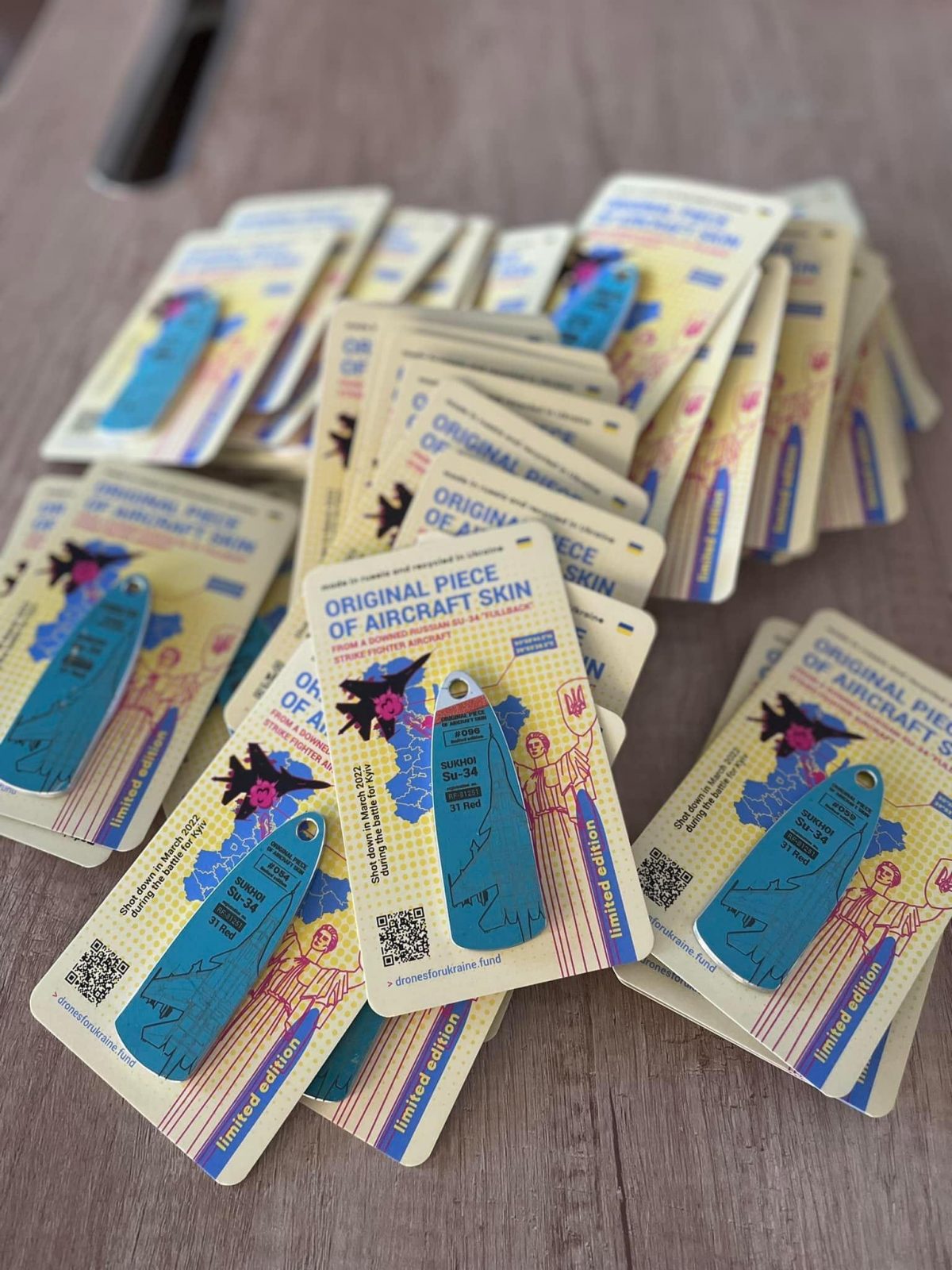 – Ми поїхали в уже звільнену Бородянку, там був розбитий Су-34 окупантів, з якого я взяв кілька шматків і поїхав пробувати, чи може з цього щось вийти. Я написав про першу партію у 48 брелоків у соцмережах, і отримав неочікувану для себе реакцію. На ранок виявилось, що навіть 470 було б недостатньо, і потрібно робити набагато більше. Хоча першочергово, я думав, що ще друзям буду половину просто так роздавати.