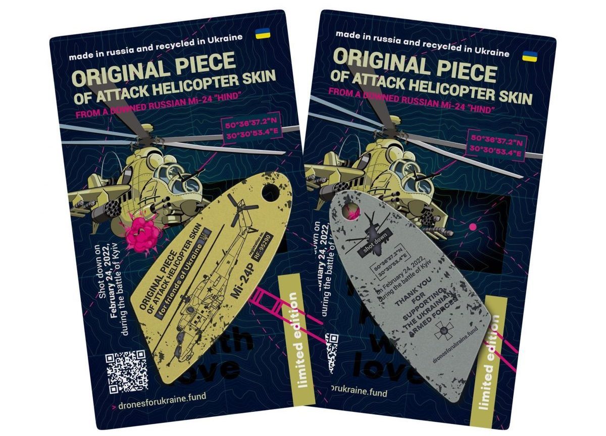 – Усі брелоки насправді однакові, в глобальному сенсі, відрізняються лише моделлю літака, з якого зроблені. Перші були з Су-34, збитого під Бородянкою, нещодавно зробили невеличку серію з К-52, а зараз випускаємо продукцію з Мі-24, який збили над Київським водосховищем.