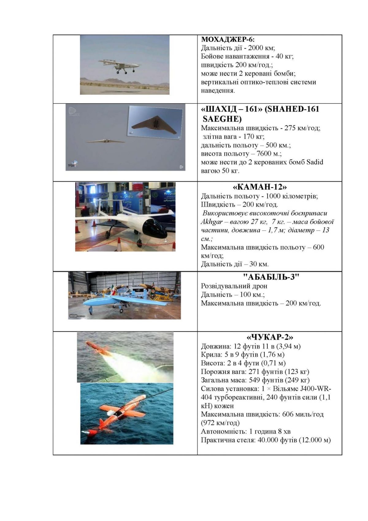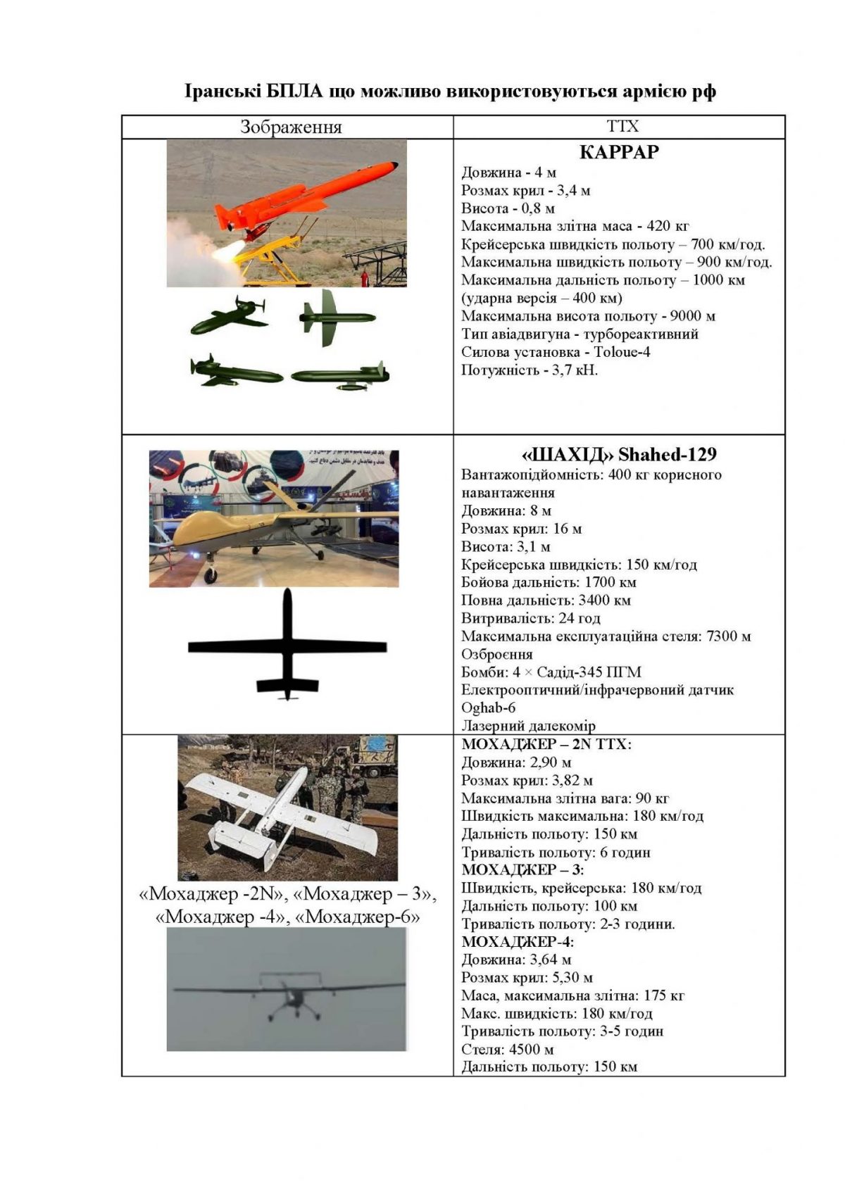 Це більш детальна інформація, щодо БПЛА, які є на озброєнні в Ірану і які можуть діяти проти українських військових.