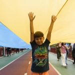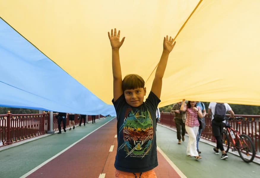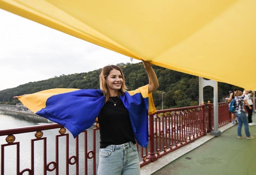 Сьогодні лівий і правий береги Дніпра символічно об’єднали державним прапором в межах мистецької акції «Україна — єдина».