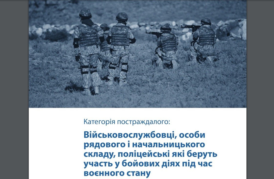 У довідці міститься інформація для різних категорій потерпілих через війну – від військовослужбовців, службовців, які зазнали травм, поранення на передовій, та їхніх родин, до дітей, працівників виробництв, волонтерів, а також журналістів і цивільних, які постраждали внаслідок російських авіаударів, обстрілів, бомбардувань.