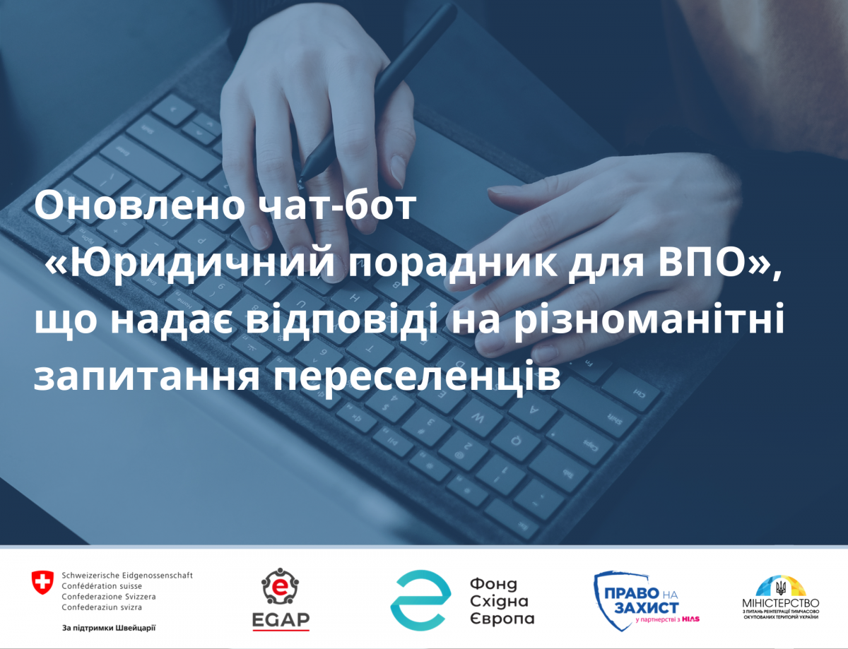 «Юридичний порадник для ВПО», запущений за підтримки Мінреінтеграції, розширює спектр безоплатної юридичної допомоги для внутрішньо переміщених та інших громадян, які постраждали від російської агресії.