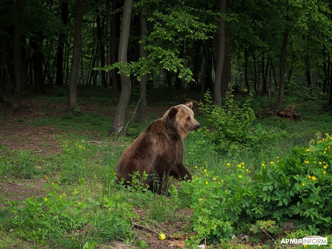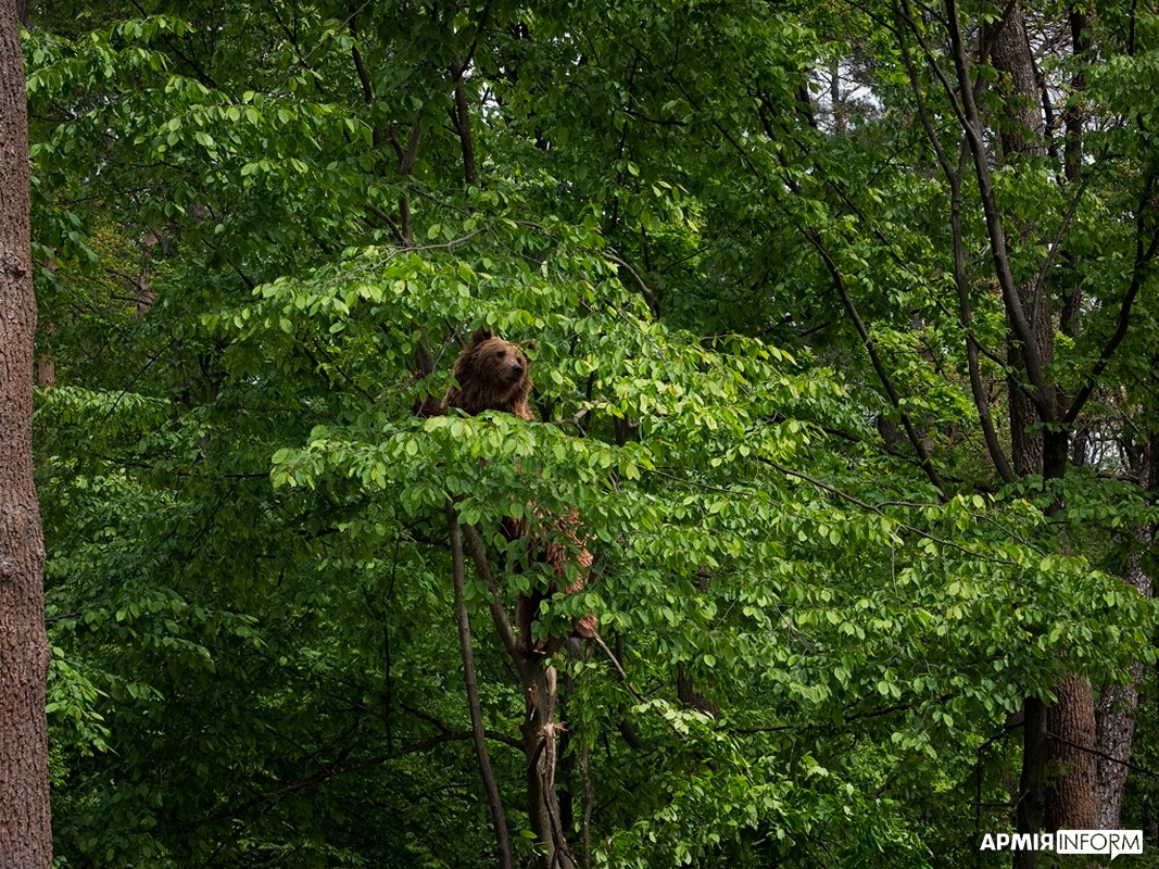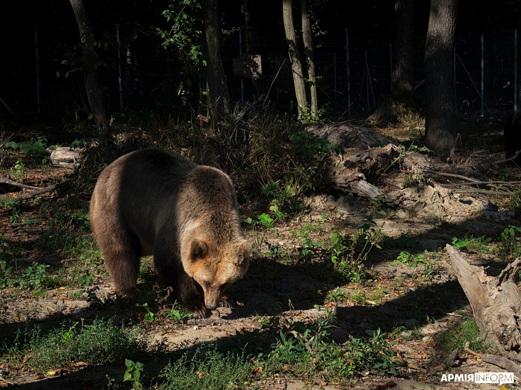 – Фактично, тут не ведмеді у клітках, як ми звикли до того у цирках чи зоопарках, – говорить капітан Данило Іщенко, – А тут люди знаходяться за загорожею, відділені від ведмедів парканами та захисними бар’єрами. І мені це дуже імпонує. Я такого ніде ще не бачив. Адже ми мандруємо вузькими стежками між просторих «мисливських угідь». У кожного ведмедя є своя чимала територія: ліс, пагорби, водойми та «ігрові майданчики», де вони себе почувають, як у дикій природі. Великі тварини після «ув’язнення» у клітках тут оживають і відроджують інстинкти вільного існування. Тому можна стояти чи сидіти біля вольєрів годинами і спостерігати, що ведмеді роблять. А вони ще й уміють комунікувати. Досить незвично, коли хижак вагою понад 100 кілограмів підходить до сітки, уважно тебе вивчає. Може сісти навпроти, починає робити тобі знаки головою чи лапами, або порикує в різних тональностях, майже як вукі із «Зоряних війн». Вони реально дуже розумні. Напевно, не менше, ніж собаки.