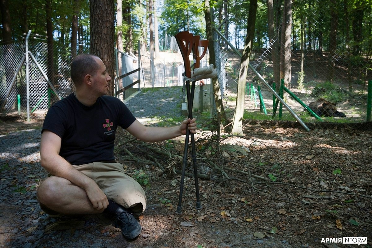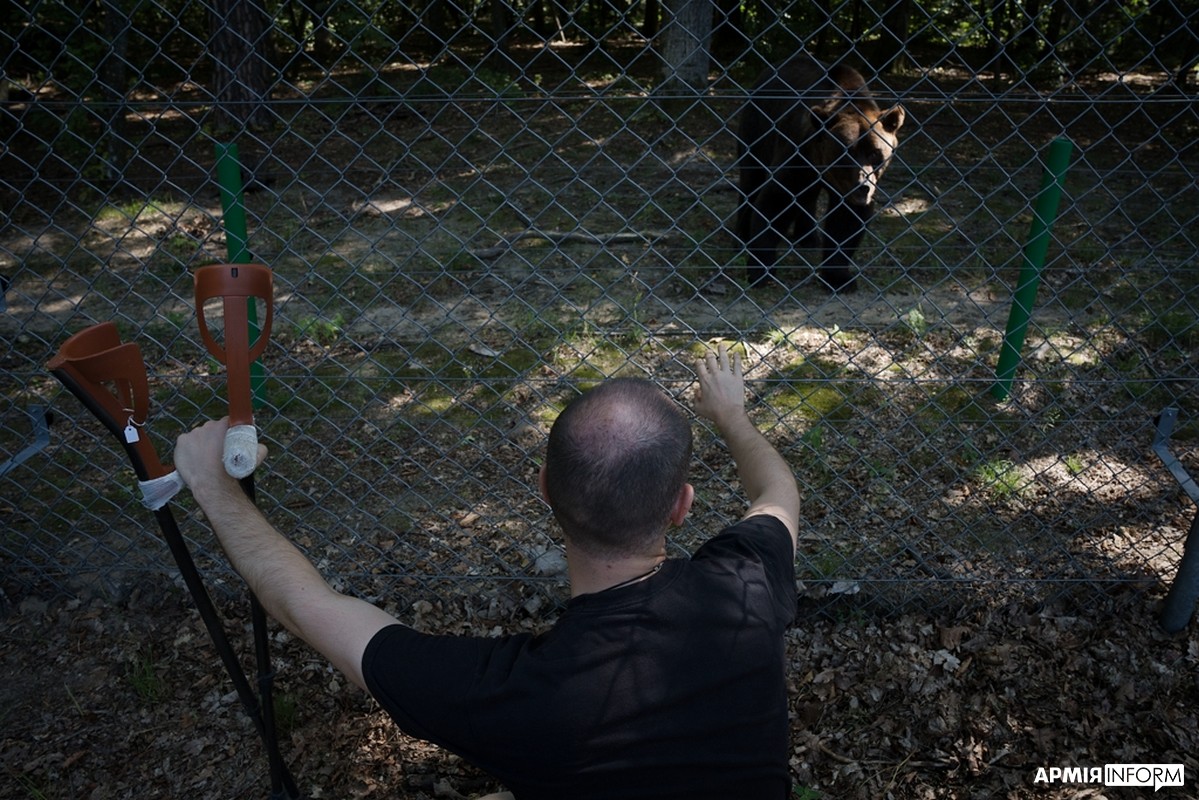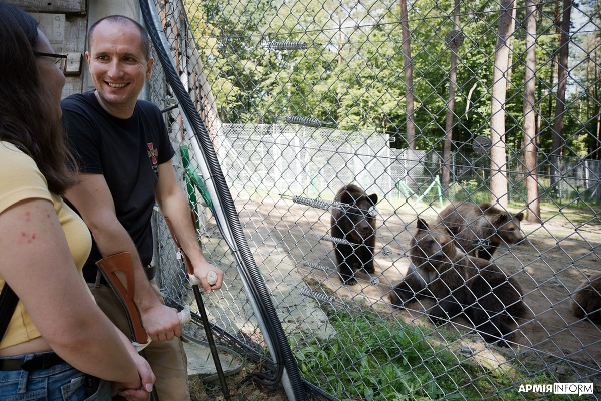 Поранений вояк зазначає, що місце для відпочинку і релаксації дійсно дуже класне. Навіть на милицях, якими користується зараз офіцер, він без проблем подолав тривалий екскурсійний маршрут. Ну а головною «фішкою» став огляд вольєра з ведмежатами-підлітками.