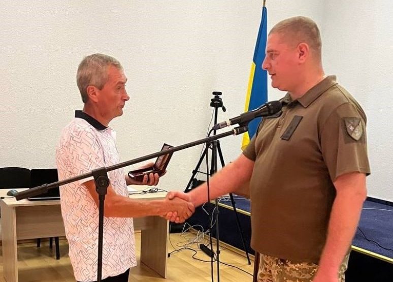 У Рава-Руській міській раді заступник начальника Львівського районного територіального центру комплектування та соціальної підтримки підполковник Павло Шуляк вручив нагороду батькові загиблого героя – Ярославу Чорнію.