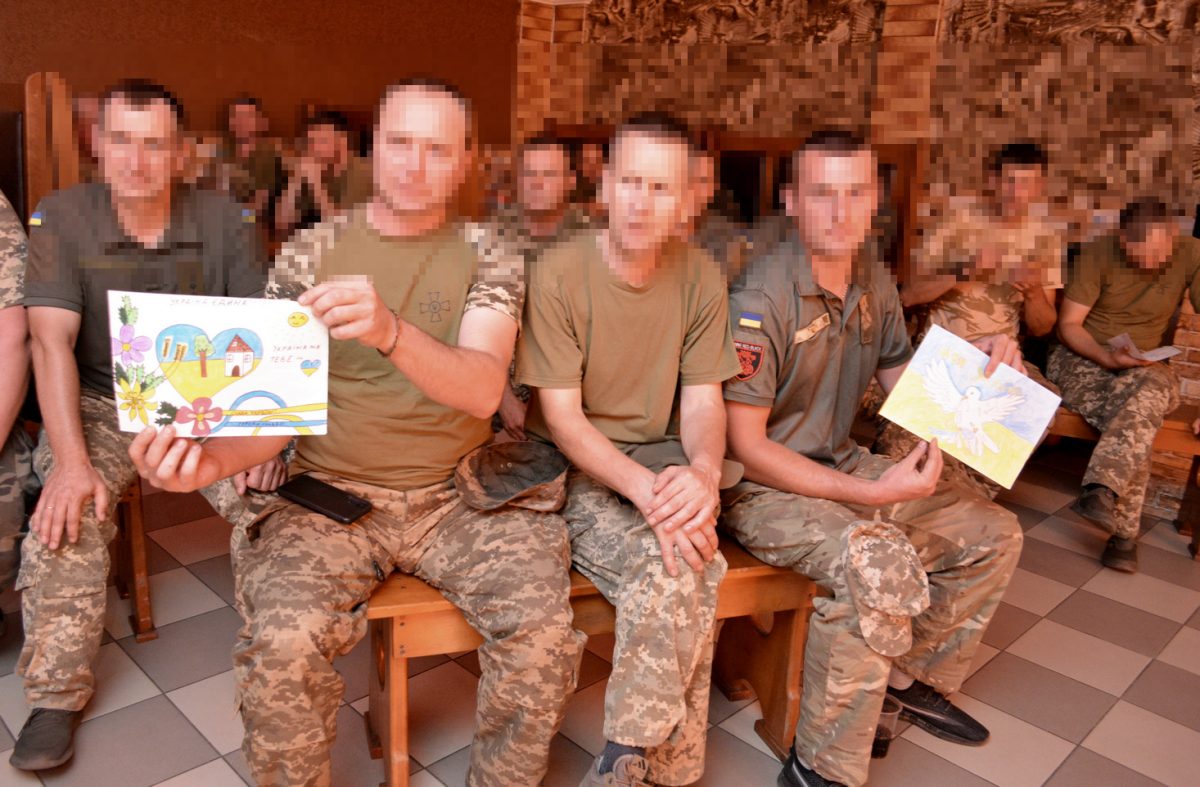 — Запевняю вас, що наші маскувальні сітки мають ще й оберегову дію, адже кожну основу сітки діти спершу заплітають у формі янгола з розгорнутими крилами, — зазначила, звертаючись до воїнів, учителька.