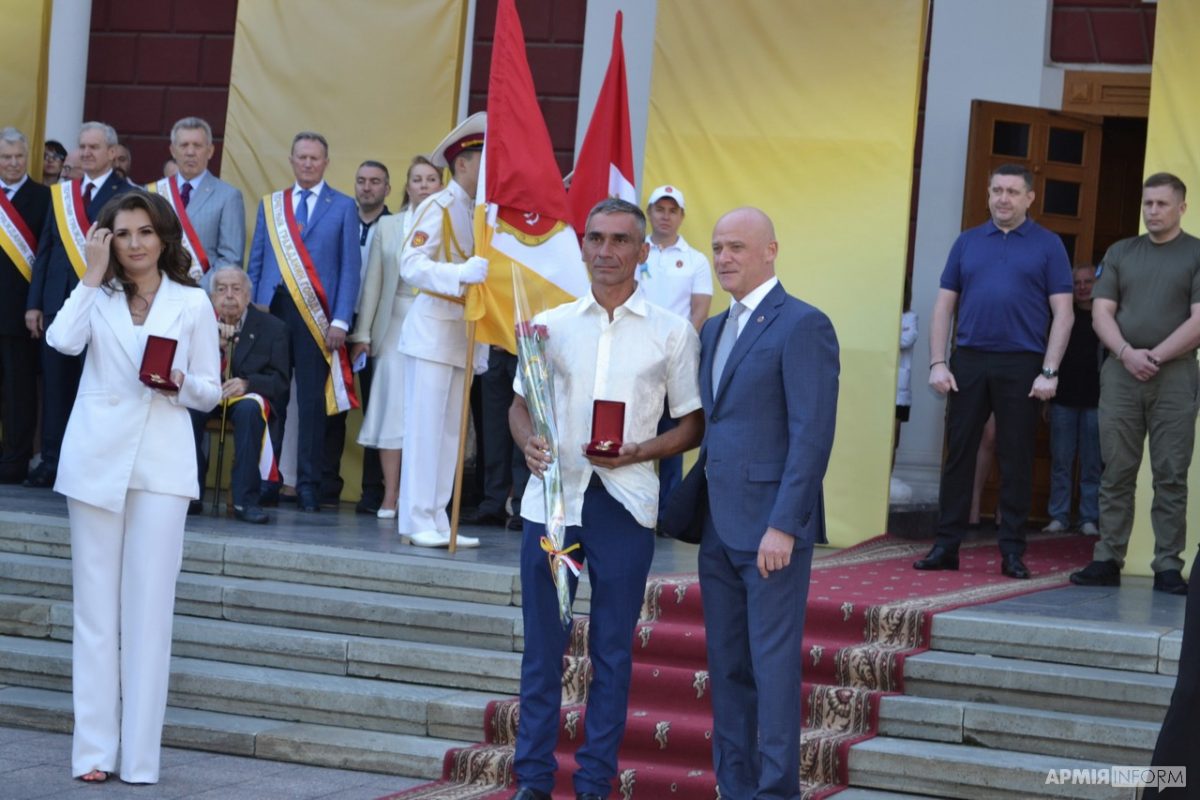 Наступним дійством свята стало нагородження видатних одеситів. Зокрема, відомому українському журналісту та культурологу Євгену Голубовському було присвоєно звання «Почесний громадянин Одеси», а полковник у відставці, учасник бойових дій в Афганістані, президент аероклубу «Одеса» Костянтин Оборін отримав почесну відзнаку міського голови імені колишнього мера Одеси Григорія Маразлі.