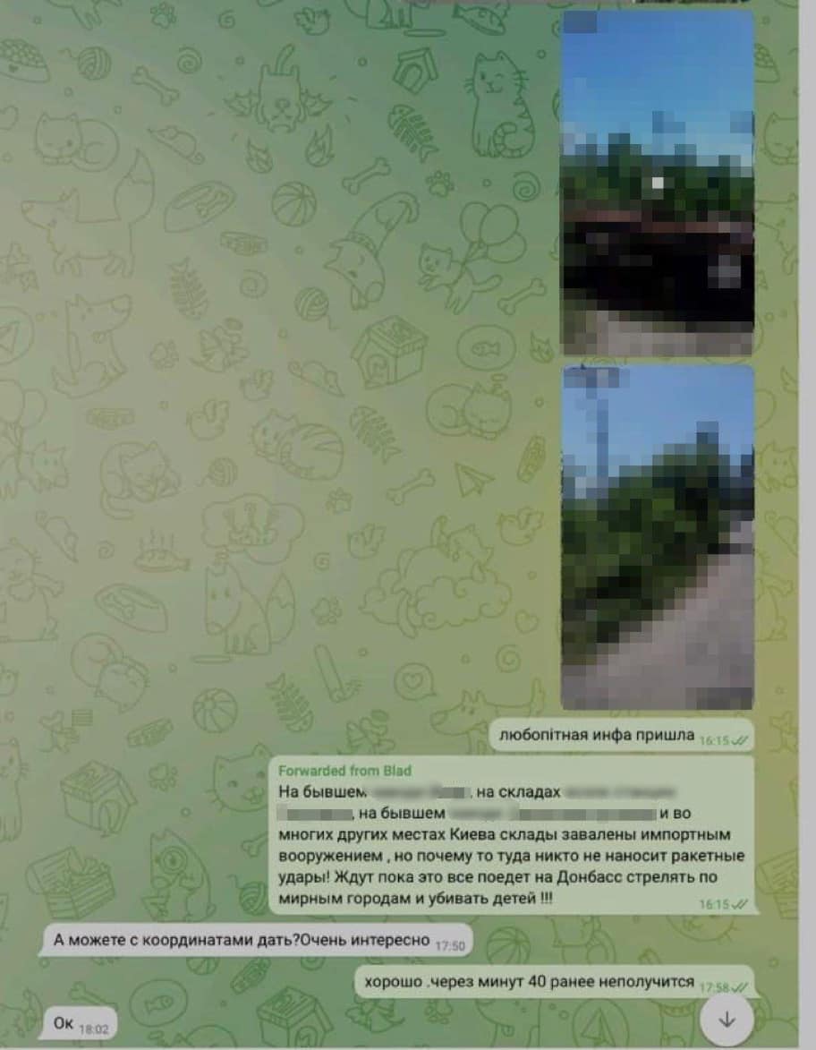 За даними слідства, упродовж липня – серпня 2022 року підозрюваний з корисливих мотивів неодноразово передавав представнику РФ через месенджер інформацію про розташування та рух на території міста Києва підрозділів та військової техніки ЗСУ. До вказаних повідомлень корегувальник додавав GPS-координати військових об’єктів та фото місць дислокацій.