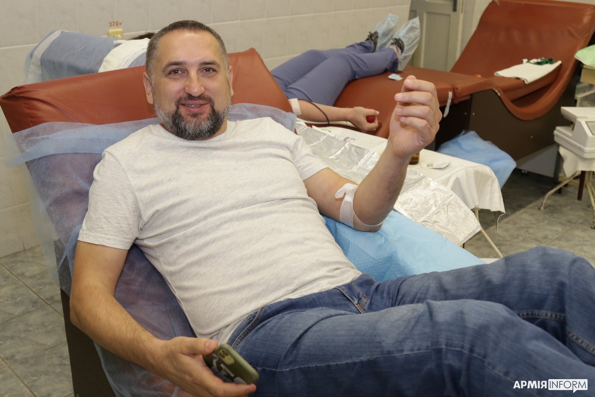 — Потреба в донорстві зараз особливо гостра. Здати кров — це те, чим ми тут, у Києві, можемо допомогти нашим захисникам. Сьогодні я вже вдвадцяте долучаюся до акції здавання крові — ще з курсантських років вважаю це благородною й почесною справою, — підкреслив начальник Інформаційного агентства підполковник Віталій Саранцев.