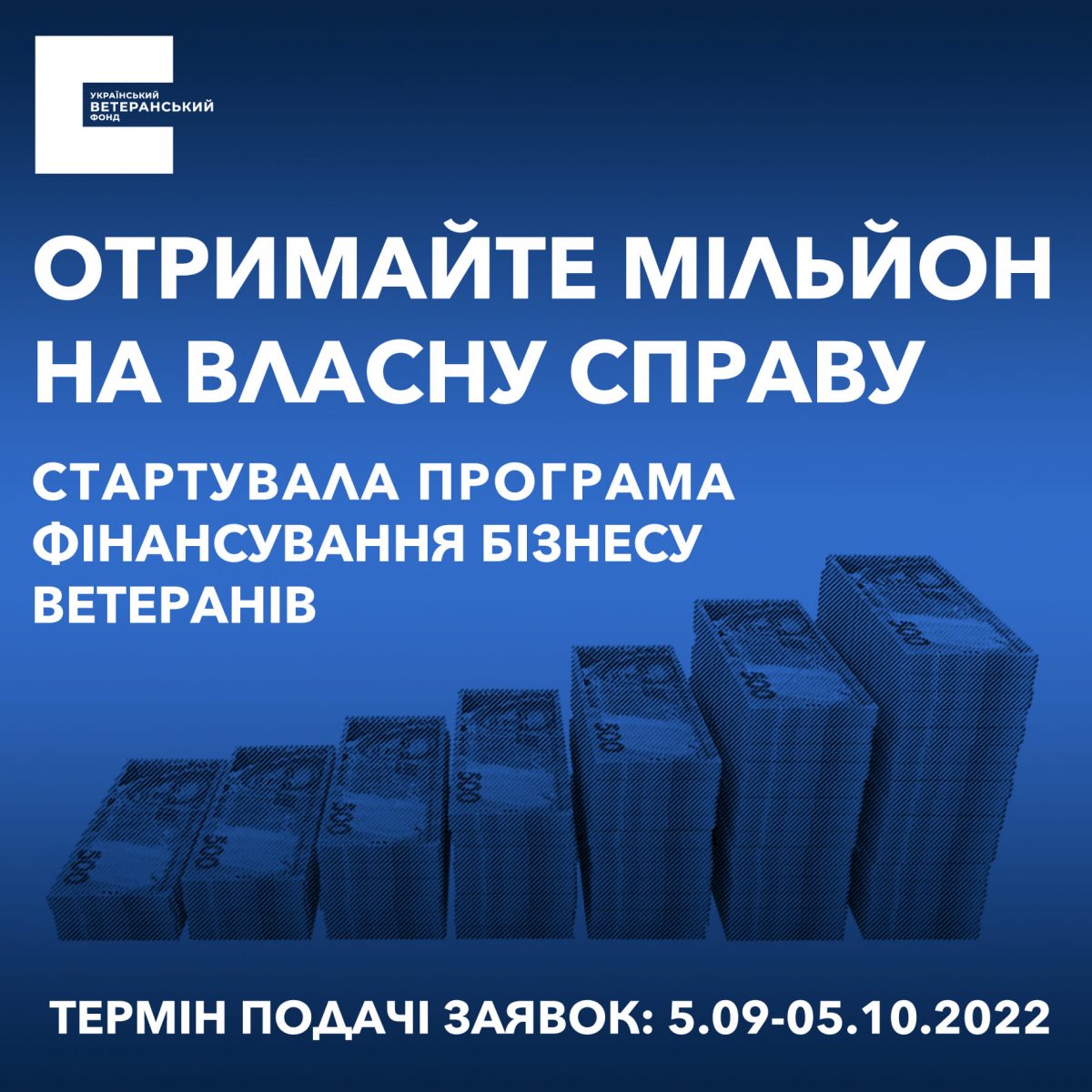 Про що, власне, йдеться. Український ветеранський фонд Міністерства у справах ветеранів України надаватиме фінансування бізнесу ветеранів та членів їхніх родин на конкурсній основі. Подати заявку можна до 5 жовтня (до 18:00 за київським часом). Мінімальна запитувана сума проєкту становить 500 000 грн, максимальна — 1 000 000 грн.
