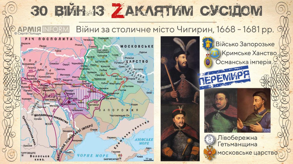 Згідно з Бахчисарайським мирним договором 1681 року між Османською імперією і московією, спустошена після згону територія вздовж Правого берега Дніпра була оголошена нейтральною і мала залишатися незаселеною. Так завершилося московсько-українське протистояння, що тривало майже безперервно впродовж 23 років.