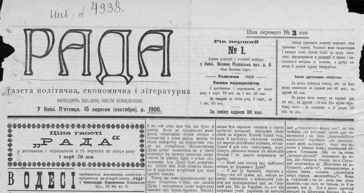 — Ви згадали газету «Рада» — це другий важливий напрямок діяльності Євгена Чикаленка. У чому її значення?