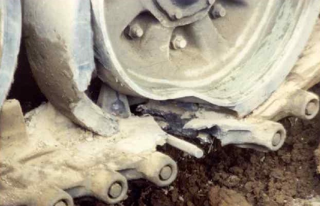 Результат вибуху ПТМ-4 під час наїзду гусеницею танка Т-72