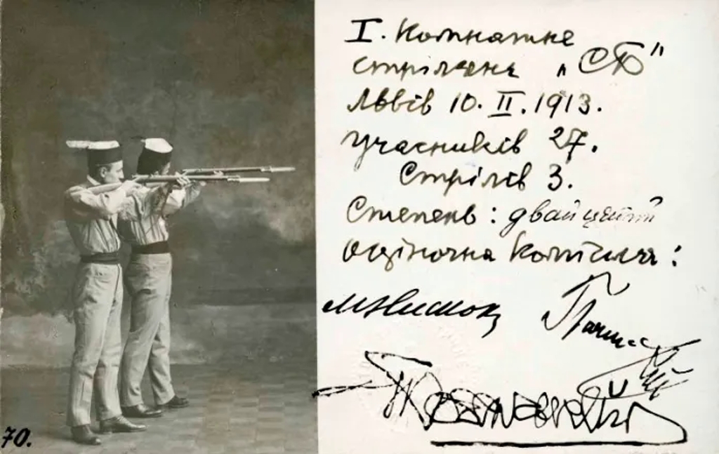 В Академічній гімназії у Львові, де викладав видатний педагог та теоретик української фізичної культури Іван Боберський (до слова, автор одного з найпопулярніших нині мотиваційних гасел «Не плачем- а мечем!» – прим. Авт), «наука стріляння» інтенсивно провадилася упродовж 1912–1914 років. Як правило, раз на тиждень гімназисти навчалися стрільби під керівництвом професійних військових і професора гімназії. У програму навчання входили теоретична і практична підготовка, зокрема ознайомлення зі зброєю, порохом і набоями, правилами поводження зі зброєю, стрільби (в гімназії або на малому стрільбищі полку піхоти). Зокрема, 21 березня 1914 року в таких стрільбах узяли участь 37 гімназистів Академічної гімназії. Збереглася фотографія з цих змагань, на якій як глядач та один з організаторів заходу зафіксований Іван Боберський особисто.