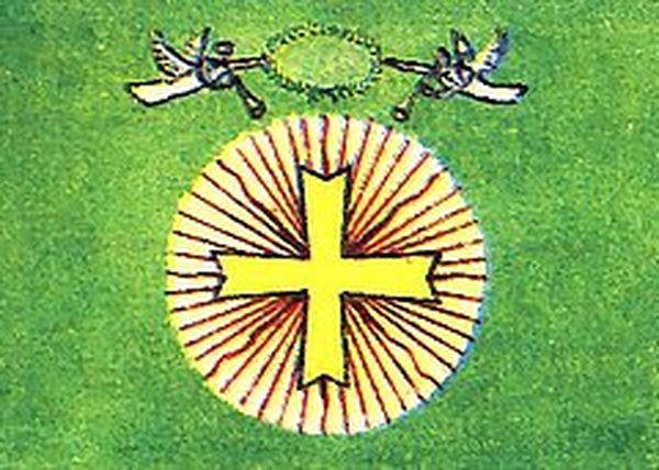 Відтоді зображення рівнораменного хреста в сяйві стало символом перемоги, дарованої Господом. На прапорі Харківського козацького полку це значення додатково підсилене зображенням двох янголів, які летять над хрестом і сурмлять у сурми, провіщаючи перемогу. У руках над хрестом вони тримають лавровий вінець, який також є символом перемоги, слави і миру.
