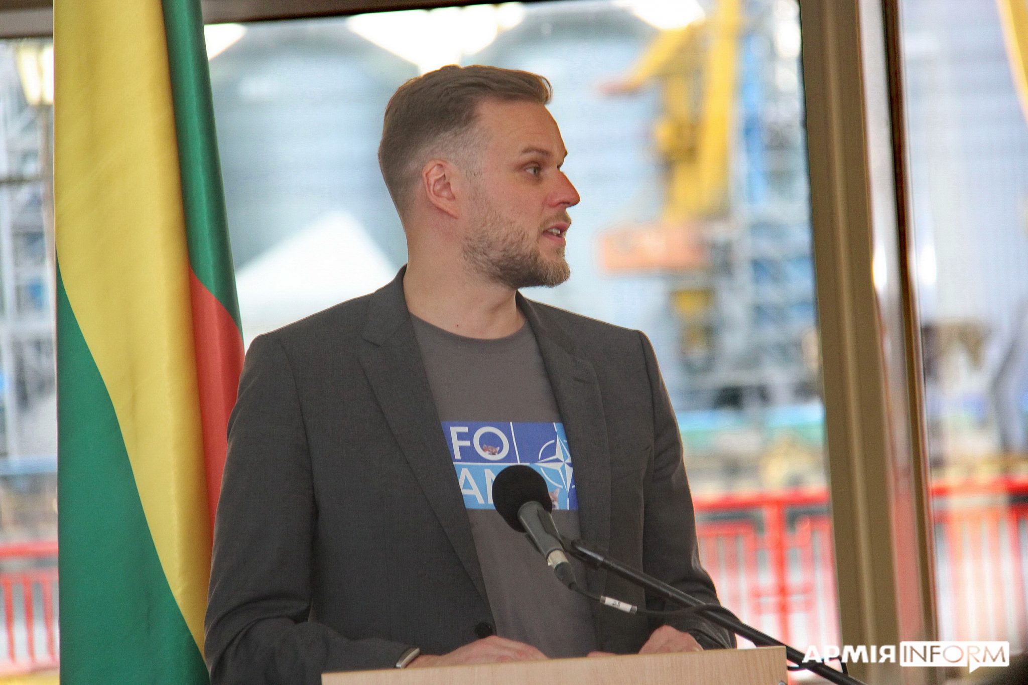 — Я дуже радий бути в Україні, коли відбуваються такі важливі зрушення на сході вашої країни. Ці події дуже впливають на моральний стан, на настрій громадян не тільки України. У нас в Литві люди вітають кожне знищення ворожого танка чи літака, кожен випадок, коли російські військові змушені вийти за межі України, — розповів Ґабріелюс Ландсберґіс.