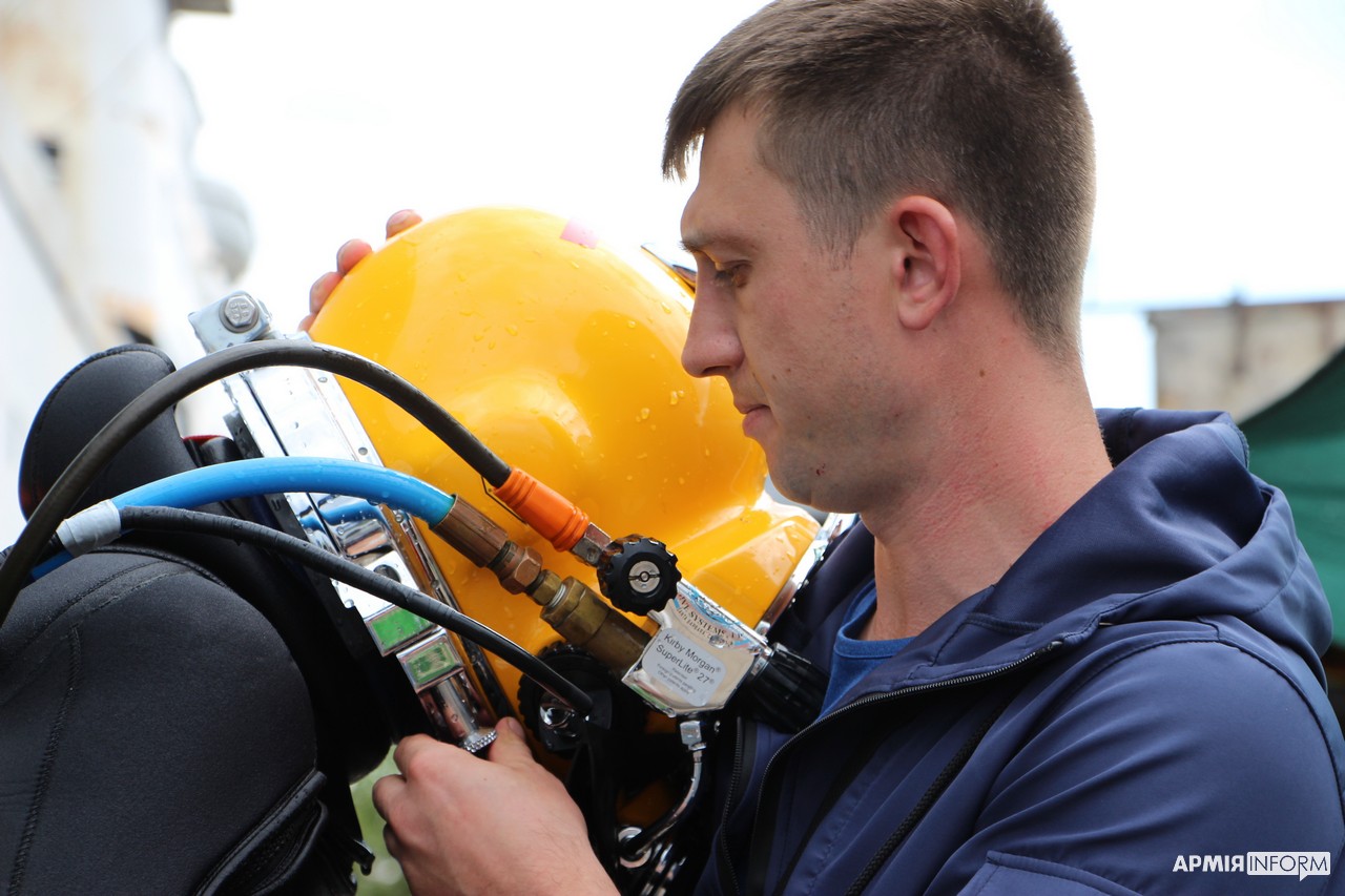 − Традиційно програма налічує дві частини: теоретичну та практичну. На першу виділено тиждень, решта часу — практика, під час якої курсантам надаються первині навички спочатку в басейні, а потім вони виконують завдання безпосередньо в морі. За такий короткий термін ми намагаємося навчити слухачів самостійно виконувати водолазні роботи у складі водолазної станції, вправно застосовувати спорядження в різних ситуаціях і виконувати типові водолазні завдання в морі, − розповідає капітан 2 рангу Сергій Гуцманюк.