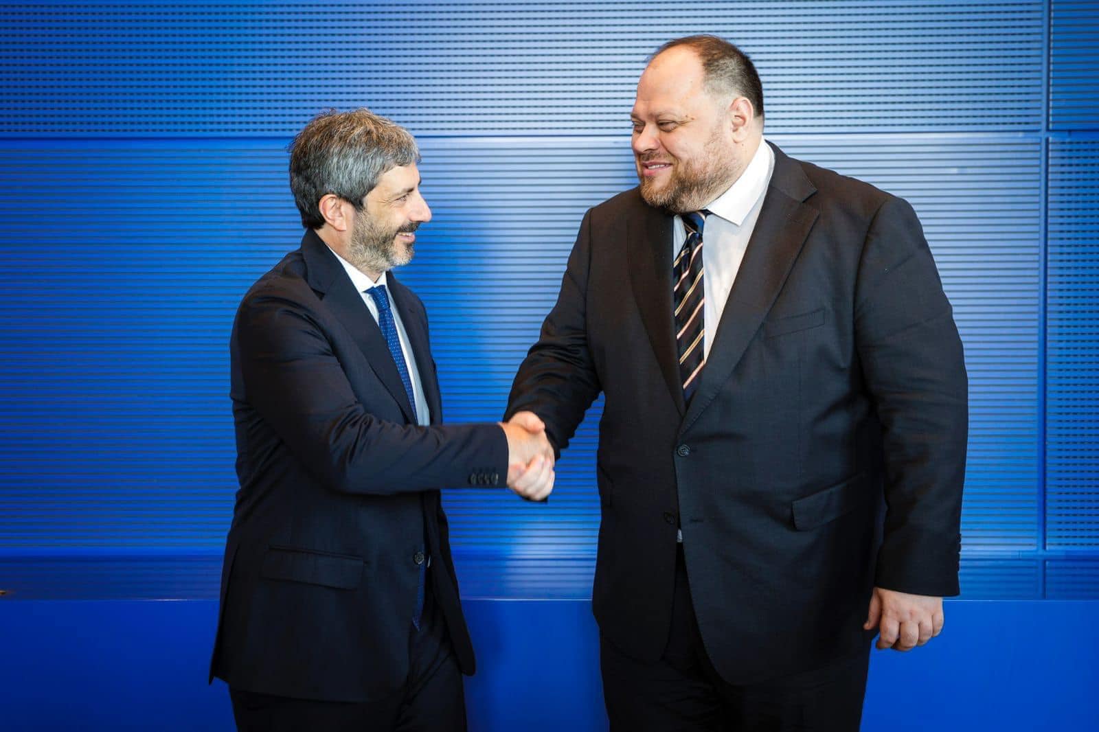 Голова Верховної Ради Руслан Стефанчук під час зустрічі з головою Палати депутатів парламенту Італійської Республіки Роберто Фіко подякував за допомогу від Італії та заявив, що розраховує на долучення Італії до процесу відбудови України.