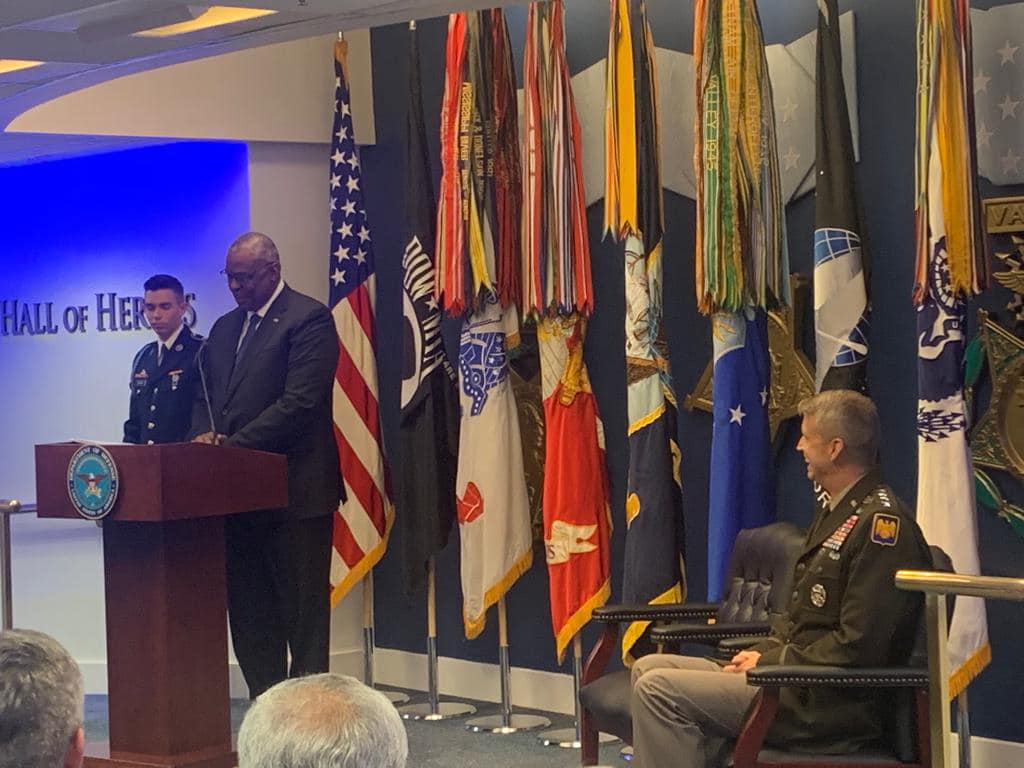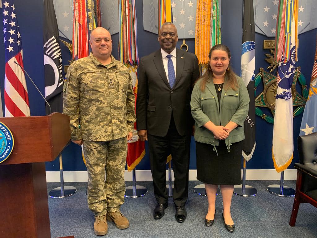 У церемонії в Залі Героїв Пентагону взяли участь Надзвичайний та Повноважний Посол України у США Оксана Маркарова та Військовий аташе генерал Борис Кременецький.