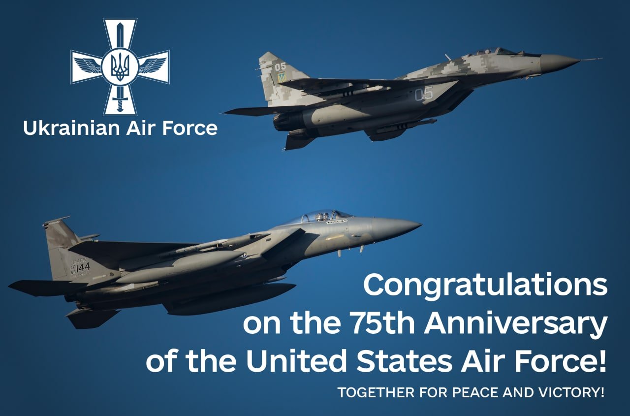 Від імені особового складу Повітряних Сил України щиро вітаю вас із 75 річницею Повітряних Сил Сполучених Штатів Америки!