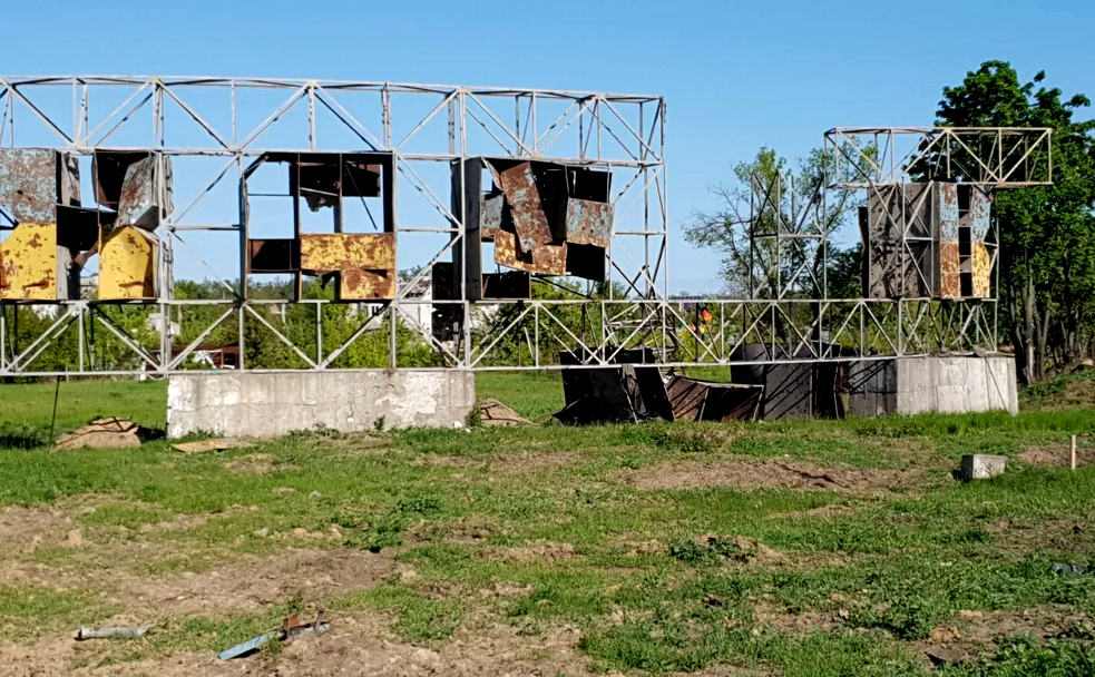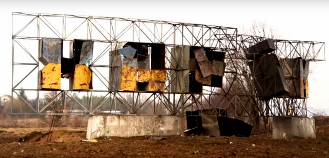 На виїзді з Харкова на об’їзну дорогу бачимо великий напис «ХАРКІВ». Колись він був пофарбований у кольори українського прапора, і зараз жовта та синя барви ще де-не-де тримаються на іржавому залізі понівечених вибухами і вогнем літер.