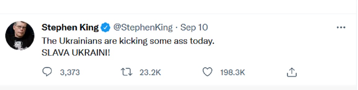 ЗСУ переконливо довели слушність порівняння Стівена Кінга, не лише стримавши наступ російських агресорів, а й успішно контратакуючи загарбників і змушуючи їх утікати за межі нашої країни. Коли до ганебної втечі росіян з-під Києва в березні додався успішний контрнаступ Сил оборони України в Харківській області у вересні, письменник зазначив, що, українці «надирають декому дупу».
