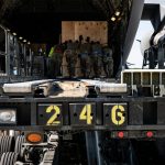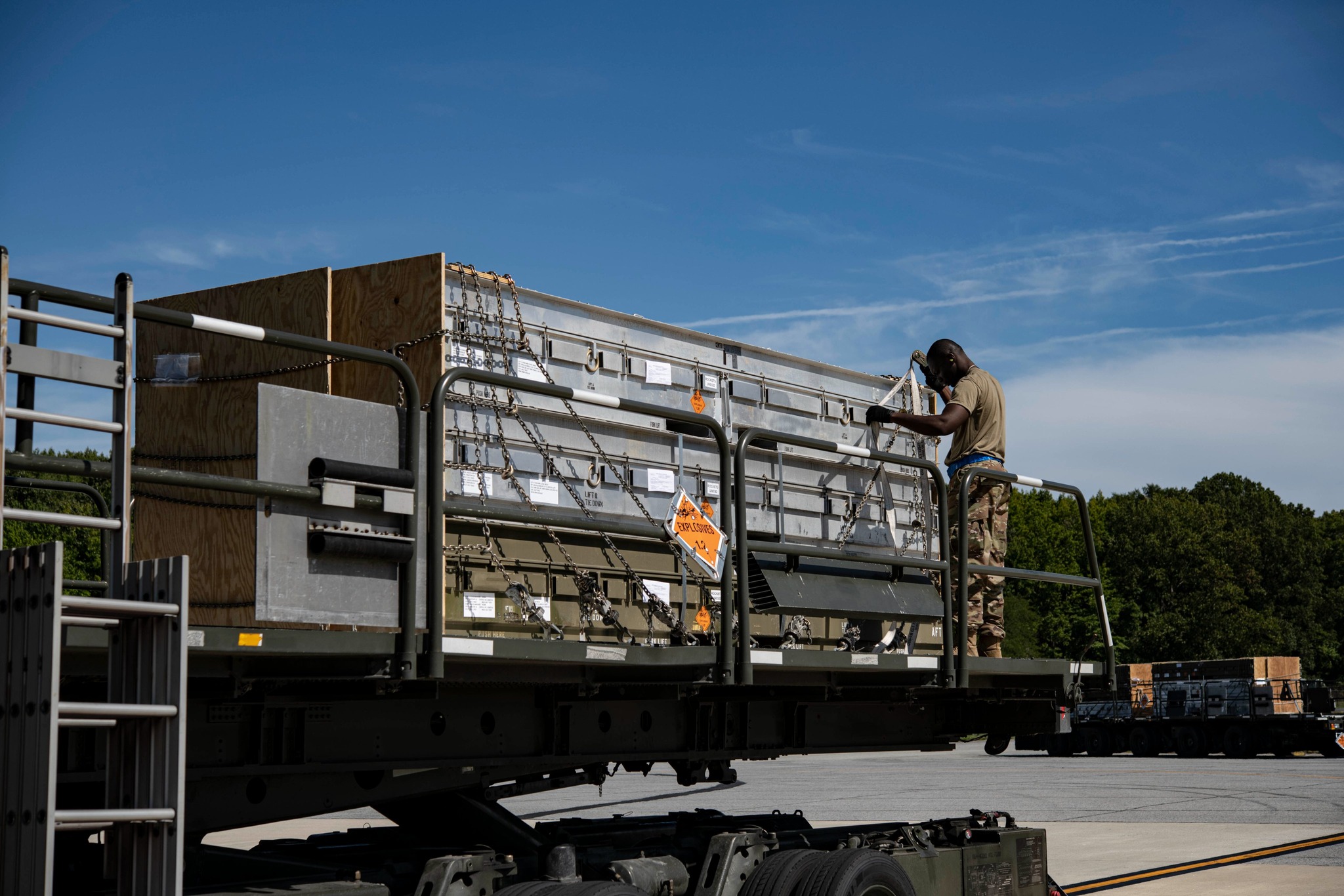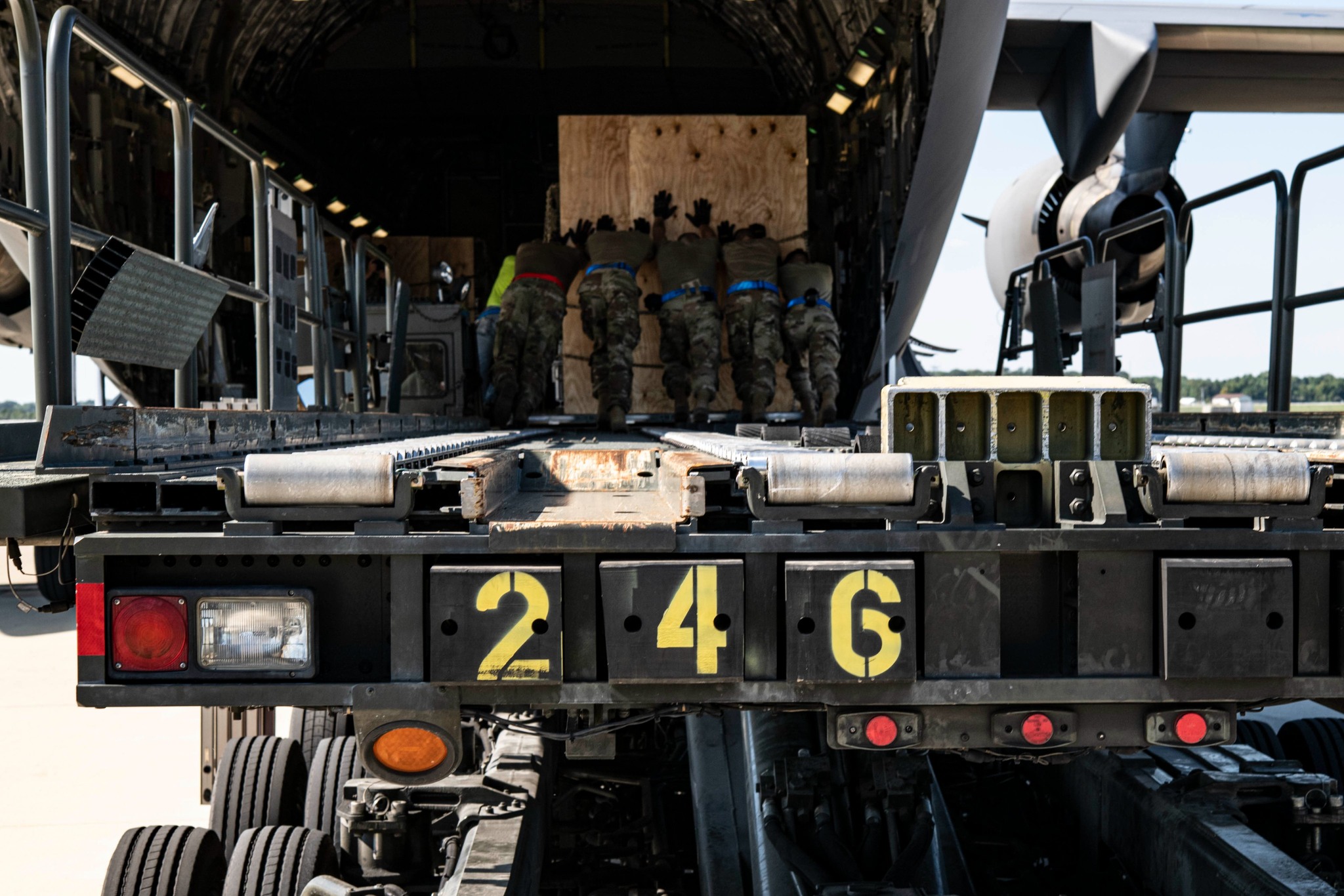 Генштаб передав повідомлення Міністерства оборони США з фотографіями: «Військовослужбовці Повітряних сил ЗС США на базі Повітряних сил США Довер, штат Делавер, завантажують пакети боєприпасів, що прямують до України, на C-17 Globemaster III в рамках місії безпекової допомоги».