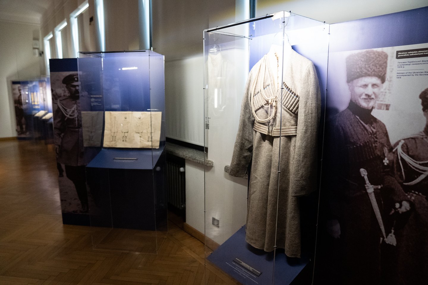 Експозиція була створена рік тому до 30-ї річниці Незалежності України й розгорнута у Виставковому центрі Музею війни в Києві. Вона розповідає про історію уніформи українського війська початку ХХ ст., достроково припинила свою роботу у перший день широкомасштабної російської агресії.