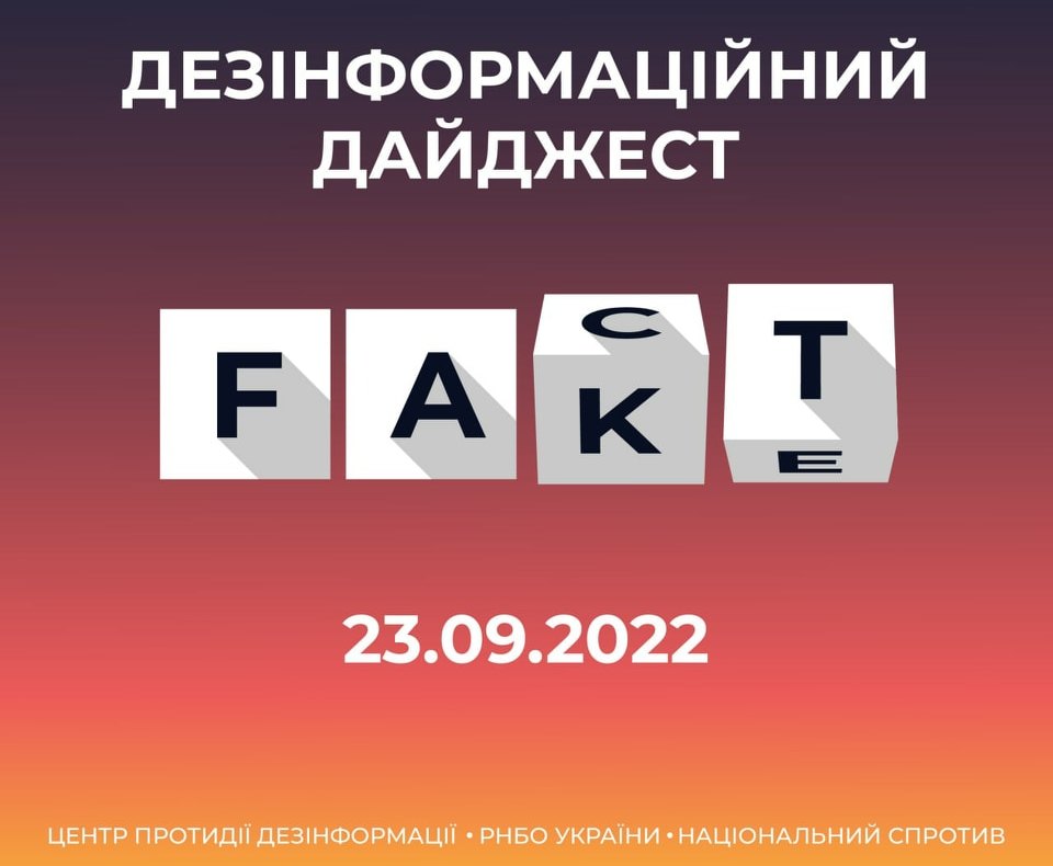 Експерти Центру протидії дезінформації при РНБО України зібрали добірку дезінформаційних вкидів, що окупанти продукували протягом 23 вересня.