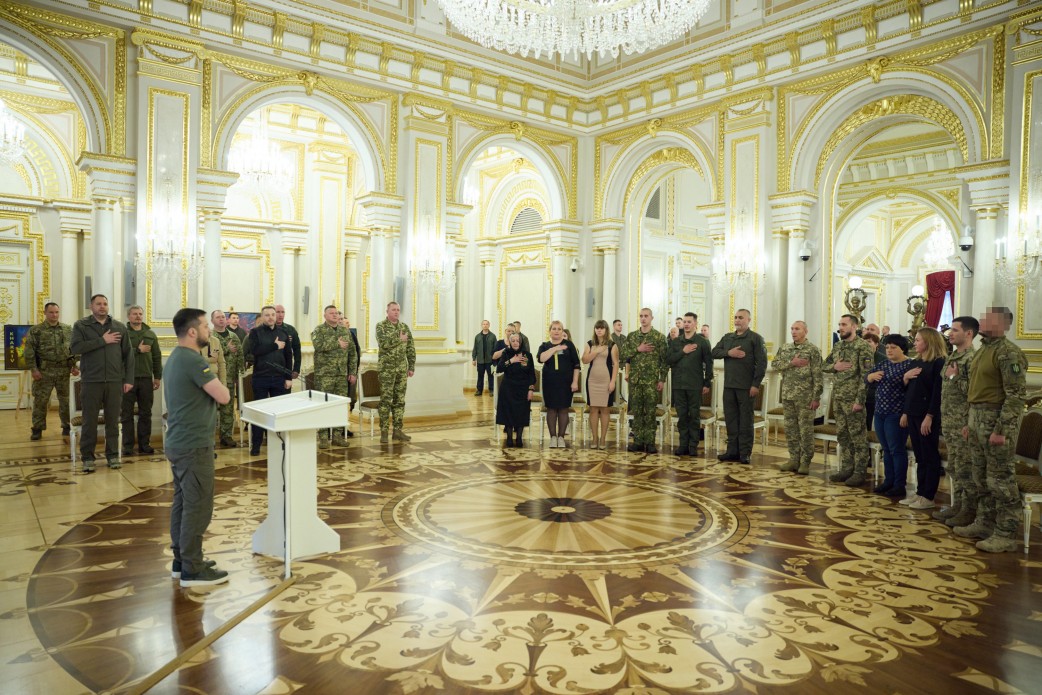 Президент України Володимир Зеленський вручив ордени «Золота Зірка» військовослужбовцям, яким присвоєно звання Героя України, та членам родин загиблих захисників, удостоєних цього звання посмертно.