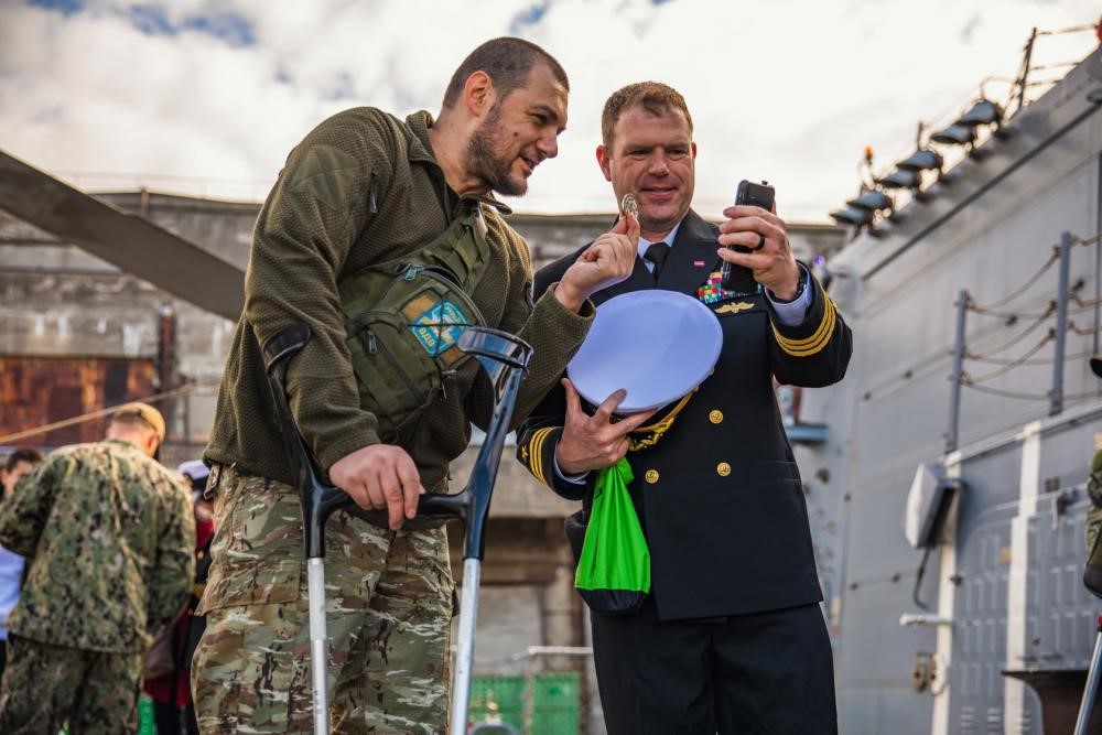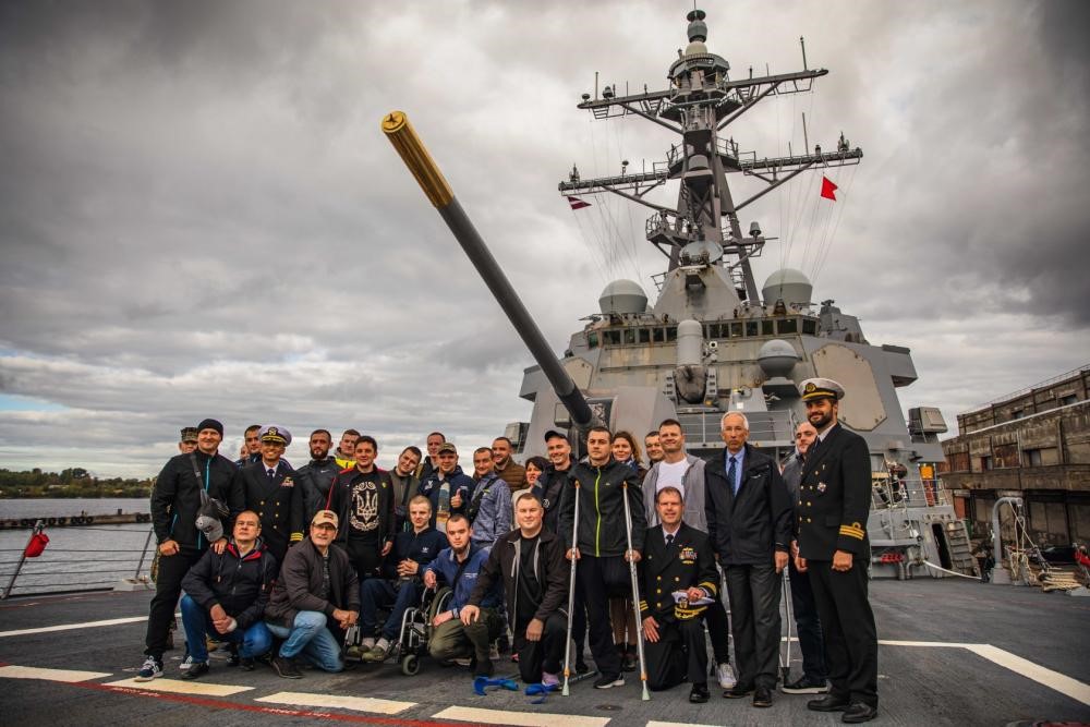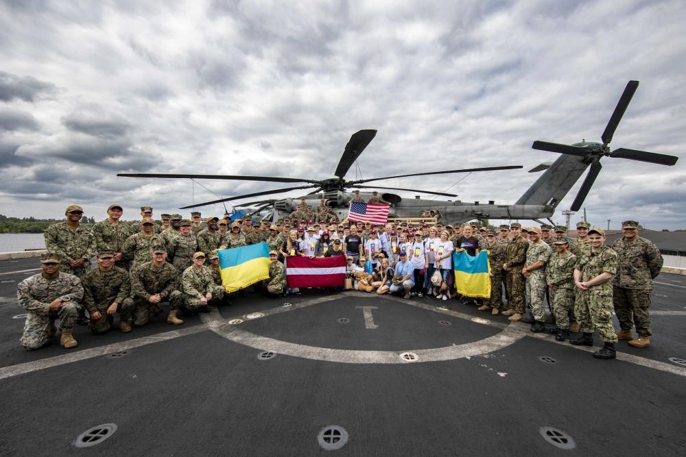 Під час свого нещодавнього візиту до столиці Латвійської Республіки Риги кораблі ВМС США вітали на борту особливих гостей — українські родини, які проживають у Латвії, та українських військових, які тут лікуються.